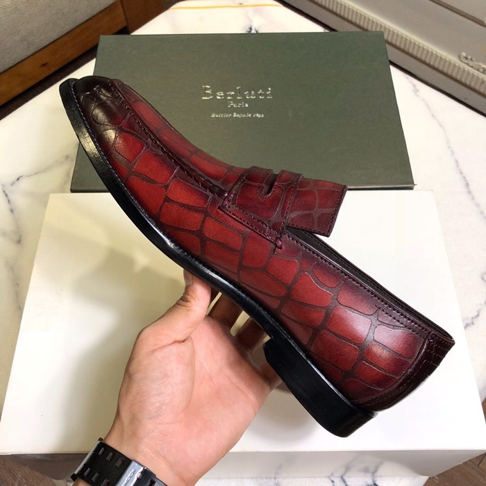 ベルルッティメンズレザーオックスフォードシューズS0027レッド