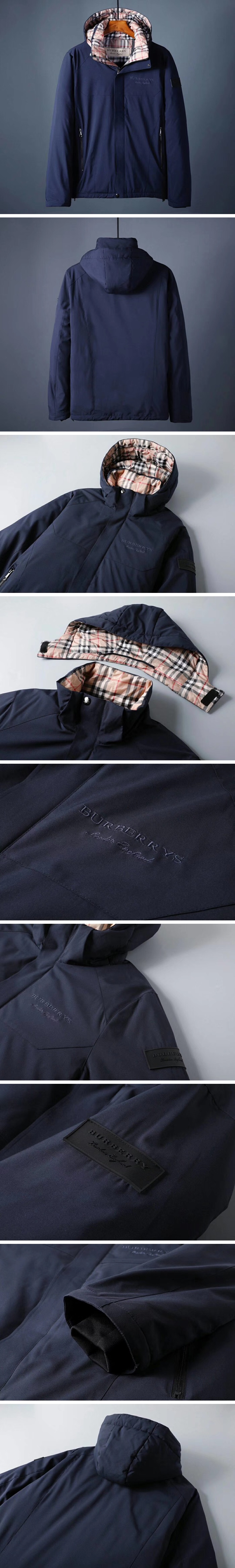 バーバリーメンズカジュアルフードパディングジャケットr01055ブルー