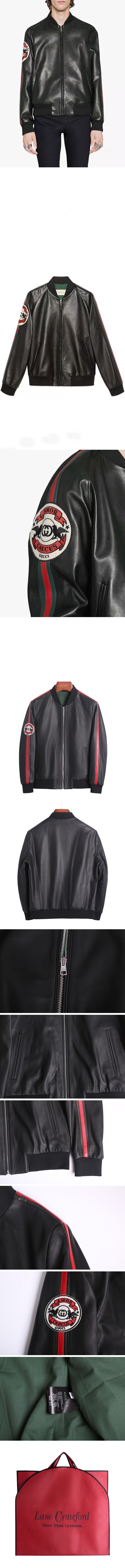 -グッチメンズカジュアルレザージャケットc01382ブラック