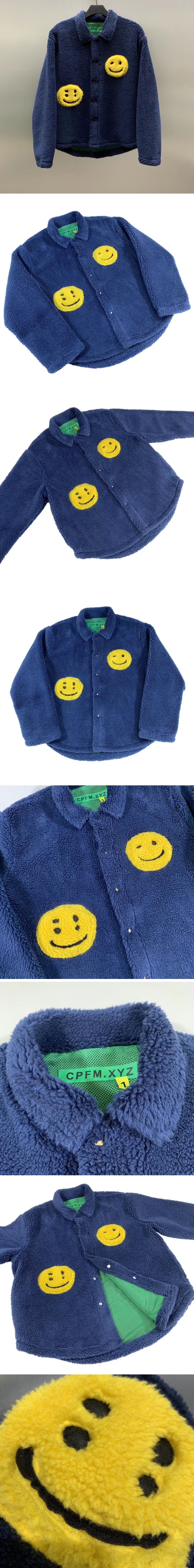 カニエウェストメンズスマイルフランネルジャケットy008ブルー