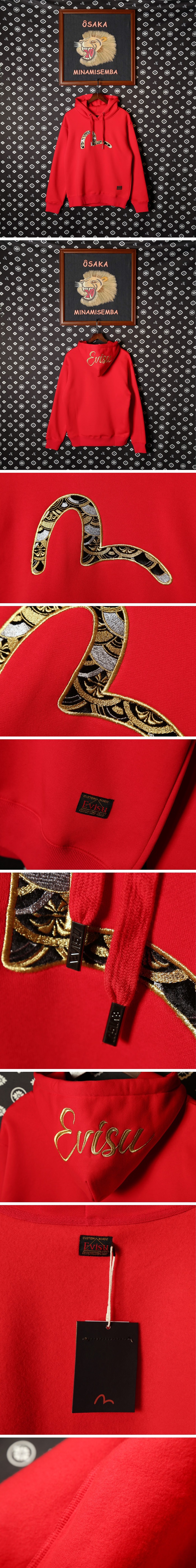 エヴィスメンズ刺繍カモメカジュアルフーディi07