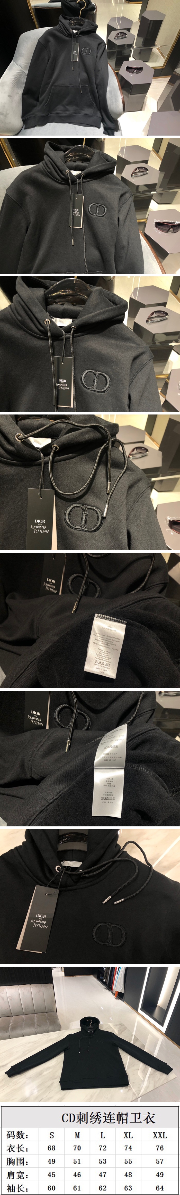 ディオールメンズカジュアルコットンフーディo0364.ブラック