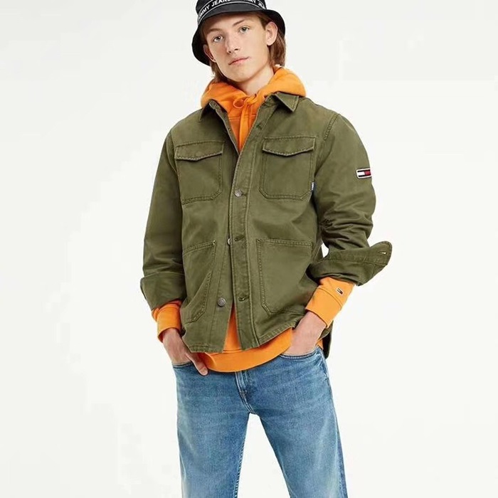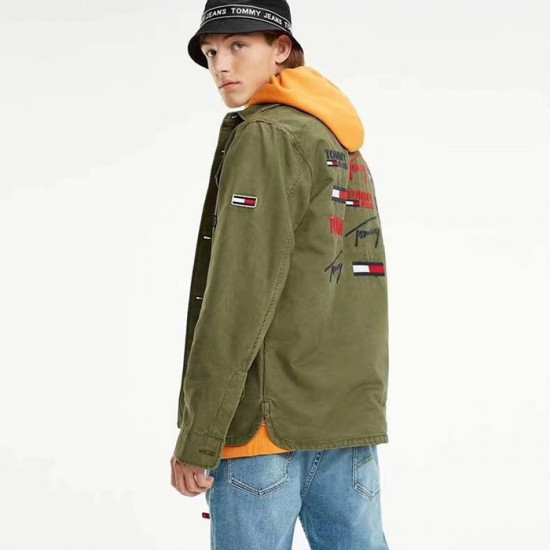 トミーメンズカジュアルデニムシャツ.オリーブ