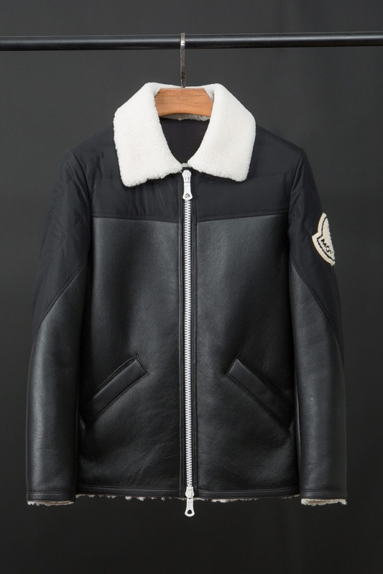 -モンクレールメンズカジュアルジップアップレザージャケットc0873ブラック