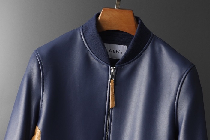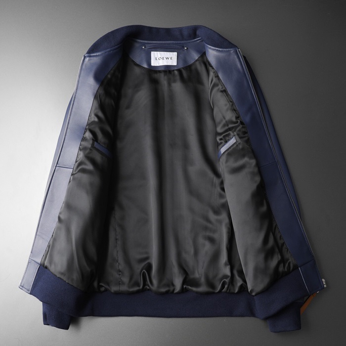 ロエベメンズカジュアルレザージャケットe0089ネイビー