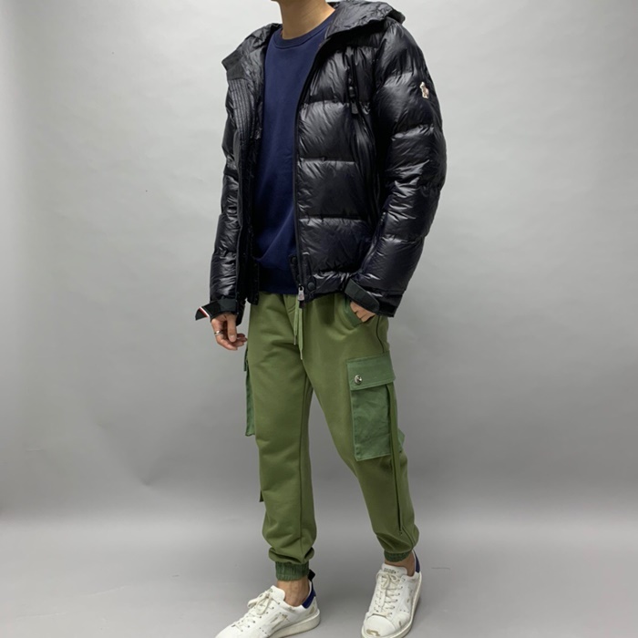 モンクレールメンズパッチモダンダウンパディングc09662(ブラック/グリーン)