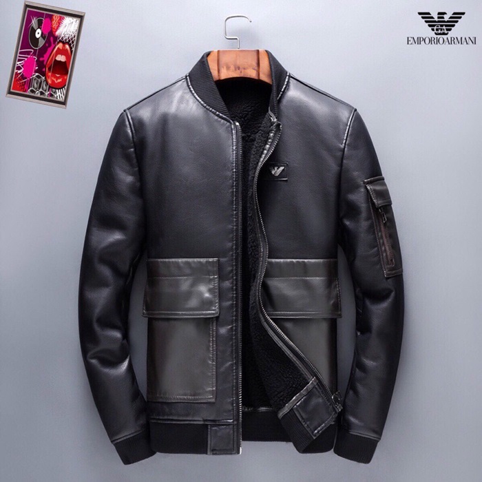 アルマーニメンズカジュアルレザージャケットm0374ブラック