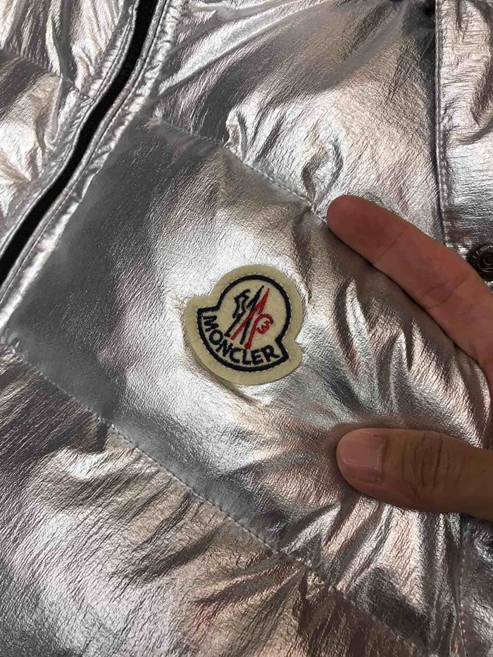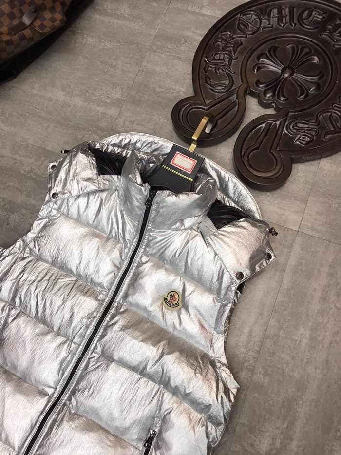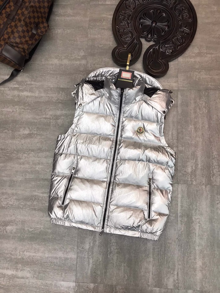 モンクレールメンズパッチモダンダックダウンパディングベストc01023シルバー