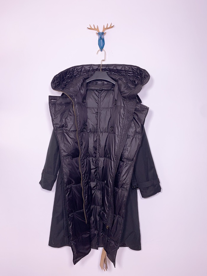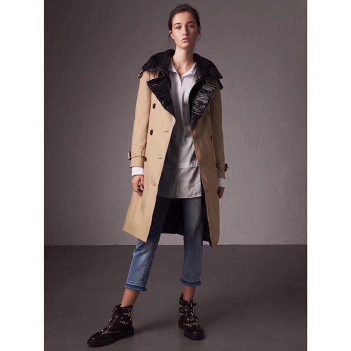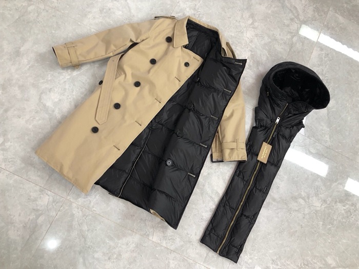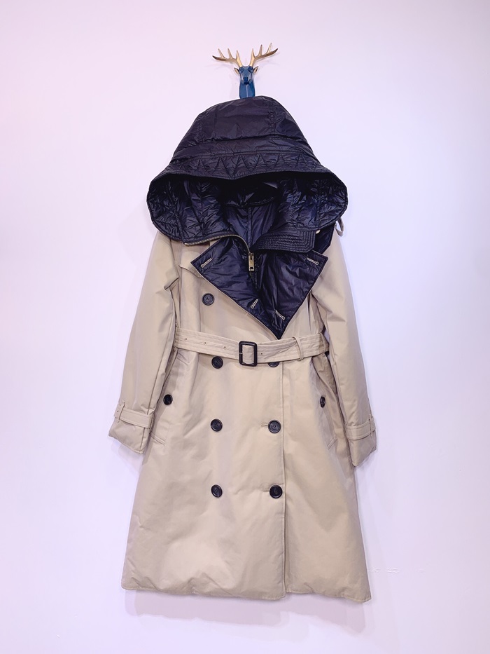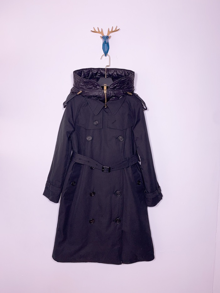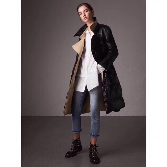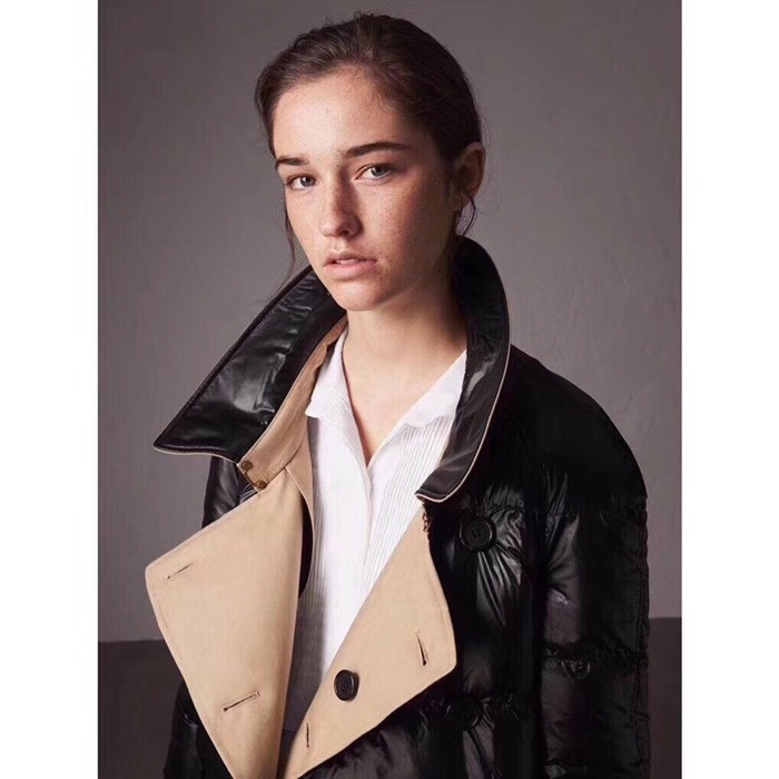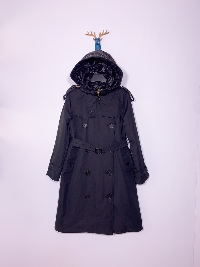 バーバリーレディースヴィンテージダウントレンチコートr013872(ブラック/ベージュ)