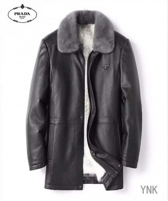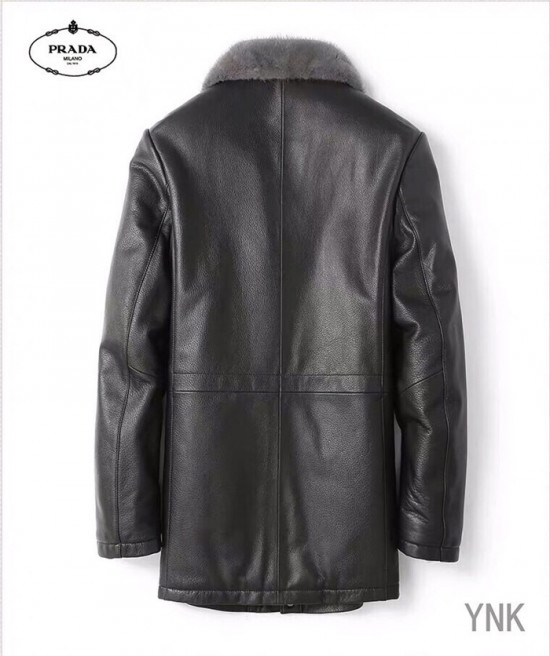 プラダメンズカジュアルレザーミンクジャケットa0794ブラック