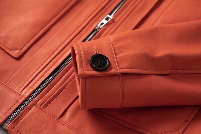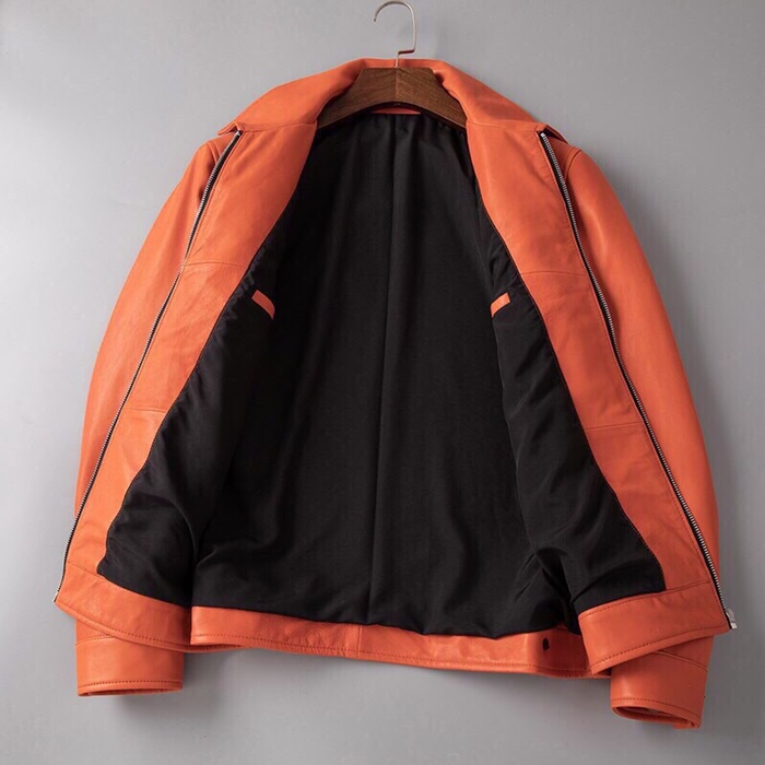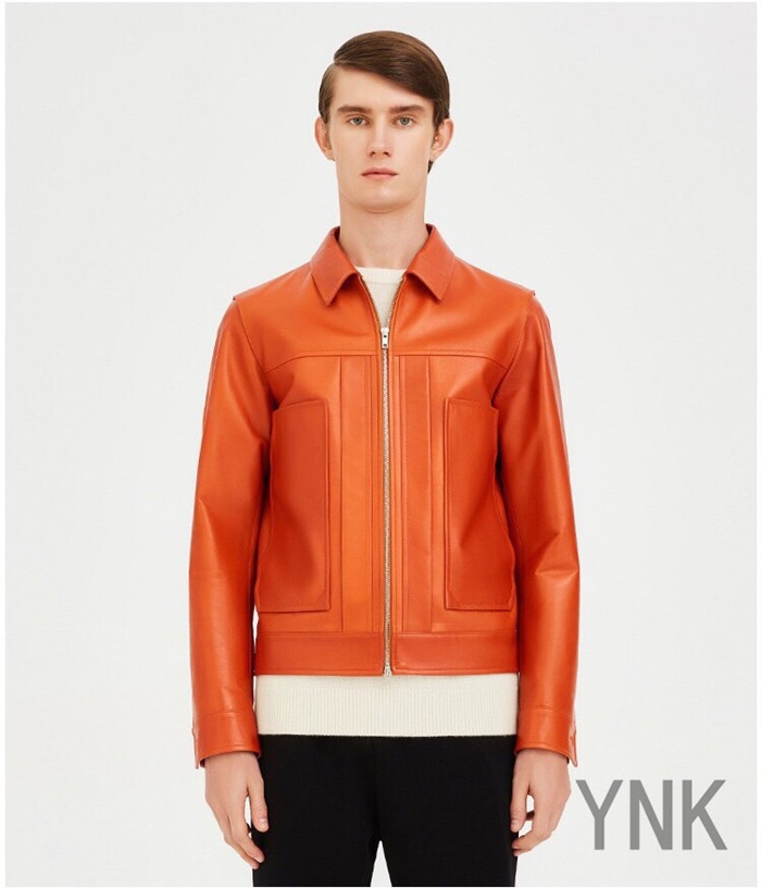 ロエベメンズカジュアルレザージャケットe0110オレンジ