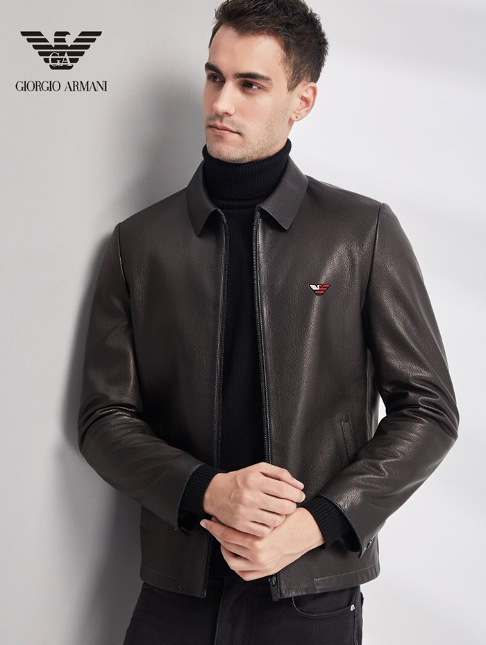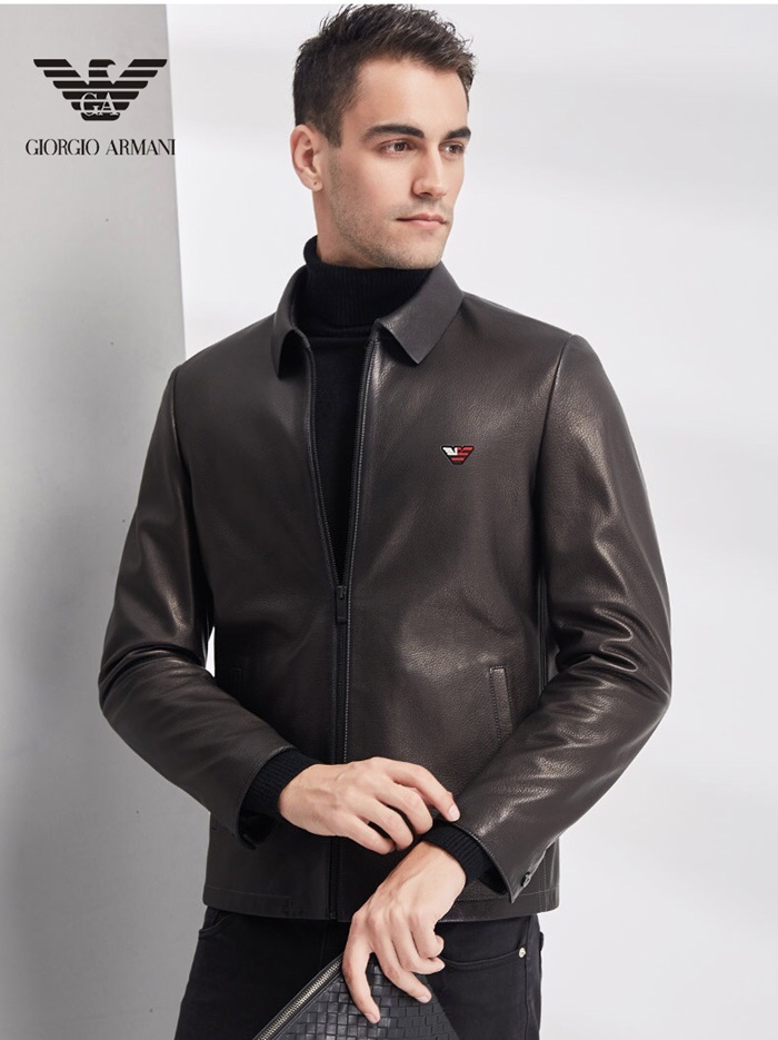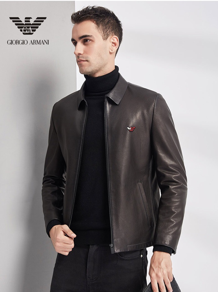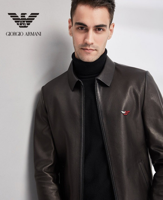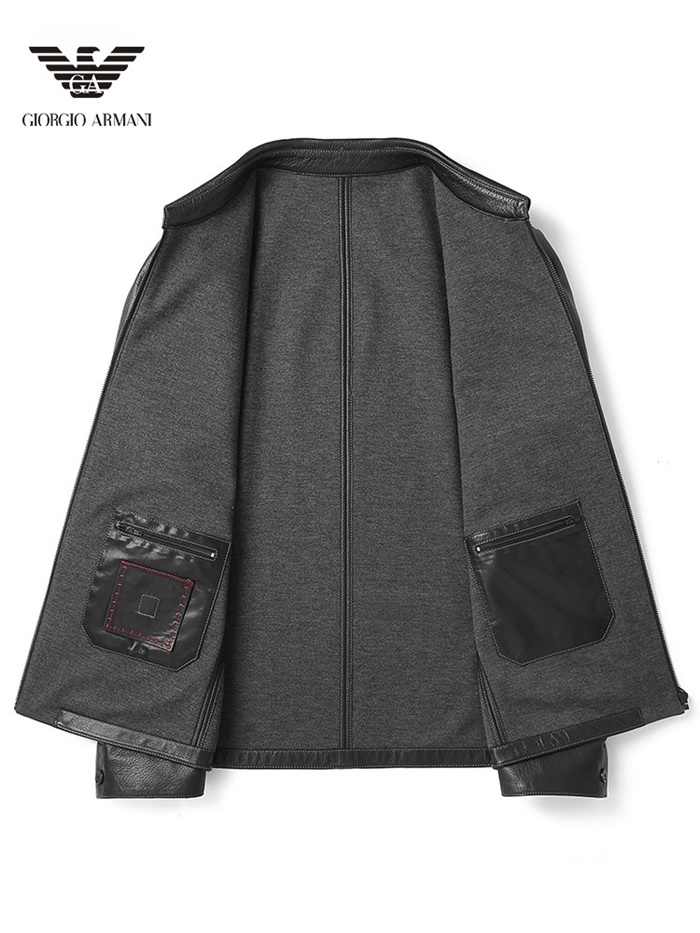 アルマーニメンズカジュアルレザージャケットm0391ブラック