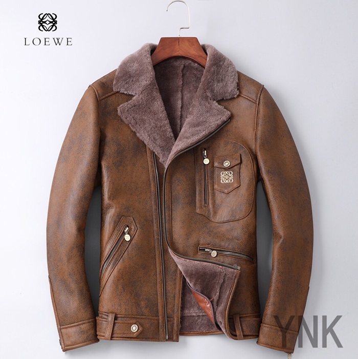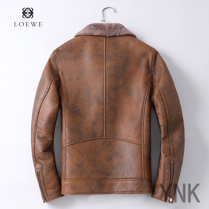 ロエベメンズカジュアルレザージャケットe0112ブラウン