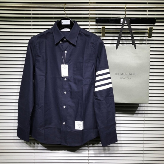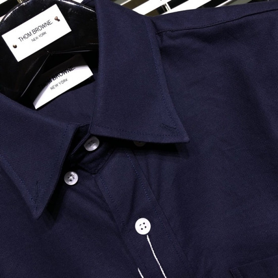 トムブラウンメンズストラップコットンシャツm0385.ネイビー