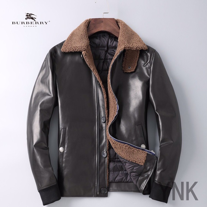 バーバリーメンズカジュアルダウンレザージャケットr01449ブラック