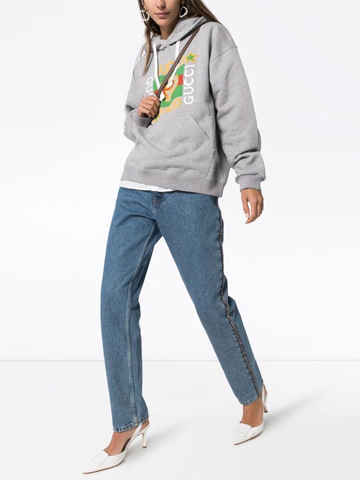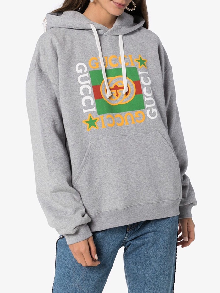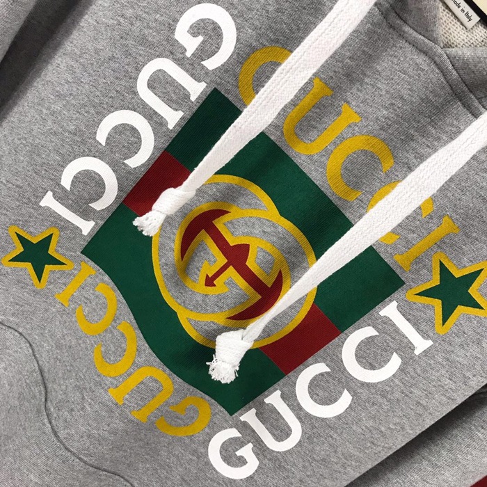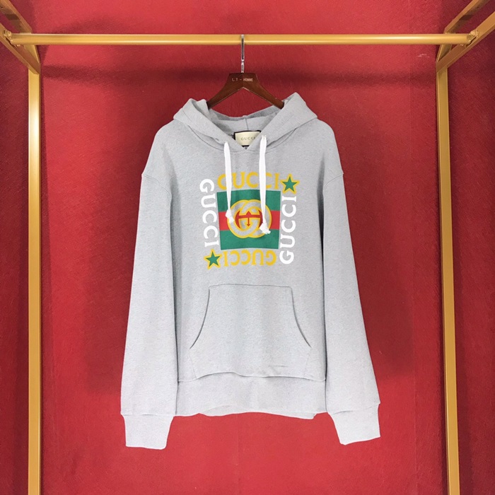 グッチメンズカジュアルコットンフーディc01632グレー