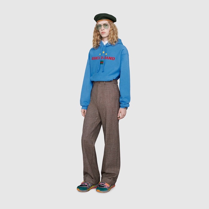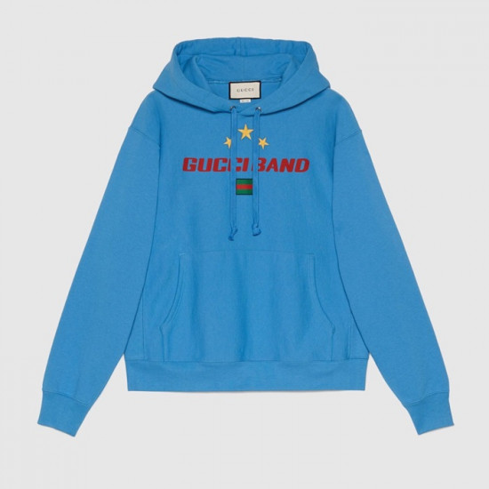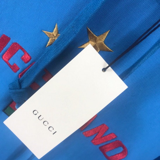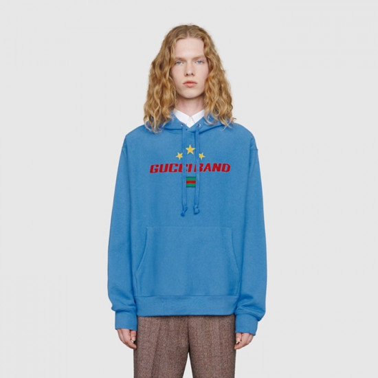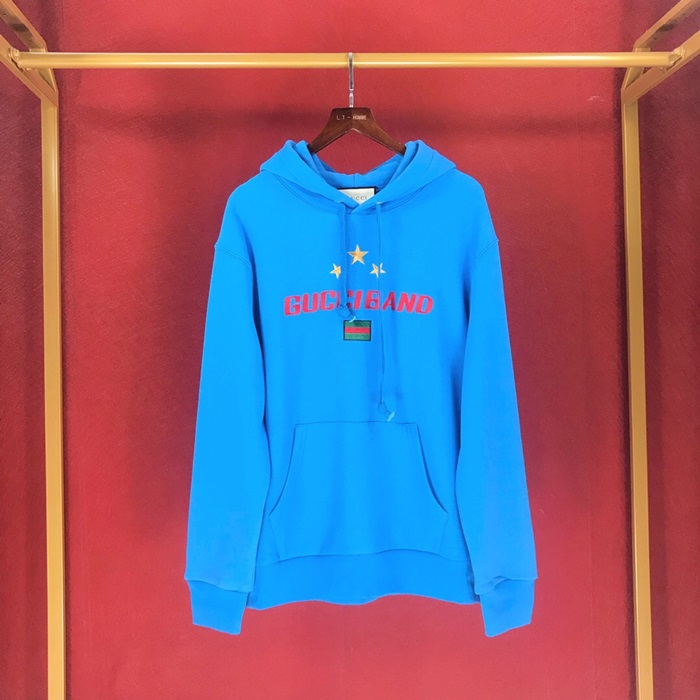グッチメンズカジュアルコットンフーディc01648ブルー