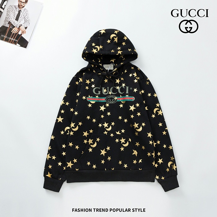 グッチメンズグリッターコットン起毛フーディc01693.ブラック