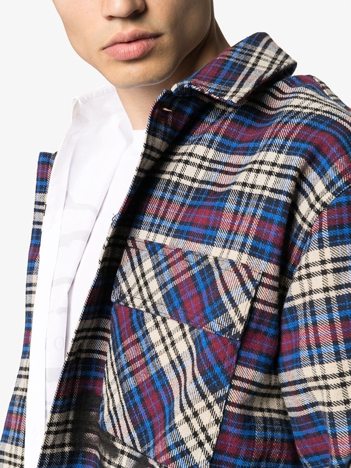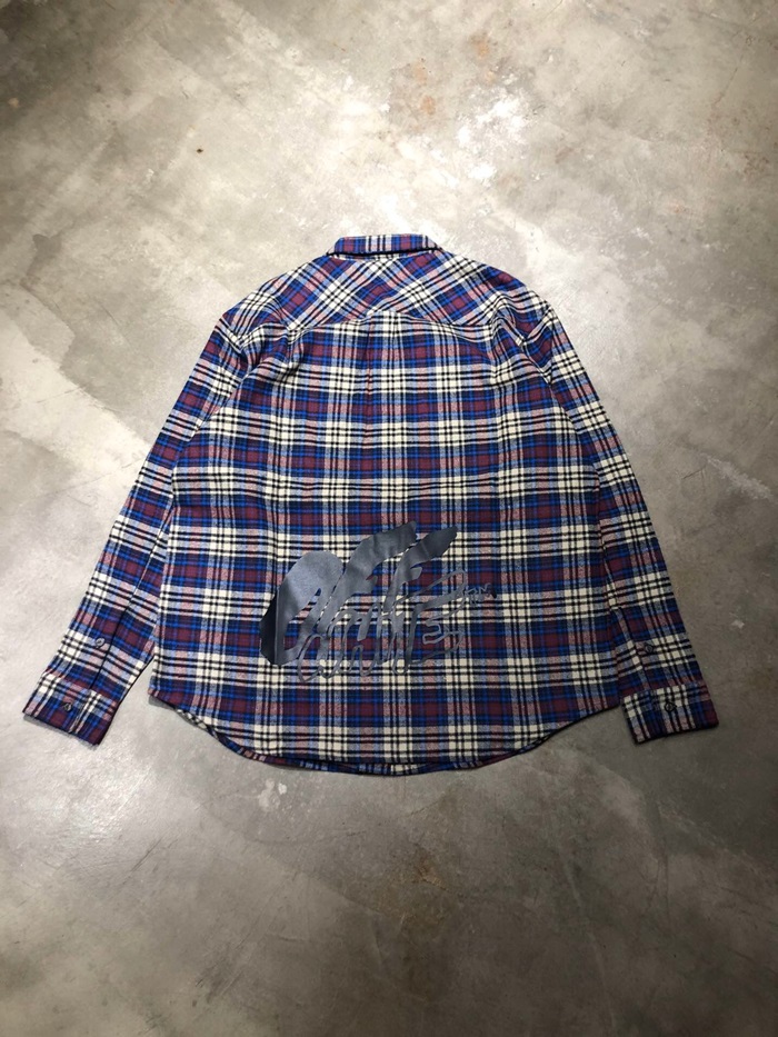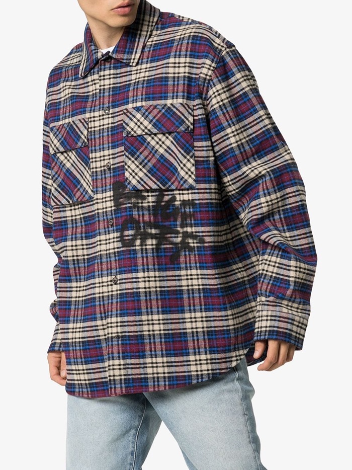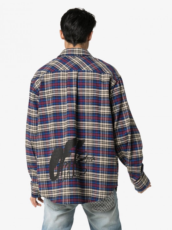 オフホワイトメンズベーシックオーバーサイズウールチェックシャツf0228ブルー