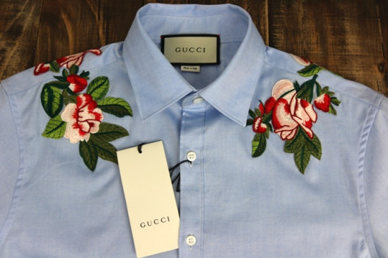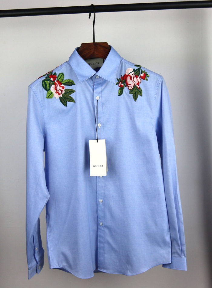 グッチメンズコットンシャツc01714スカイブルー