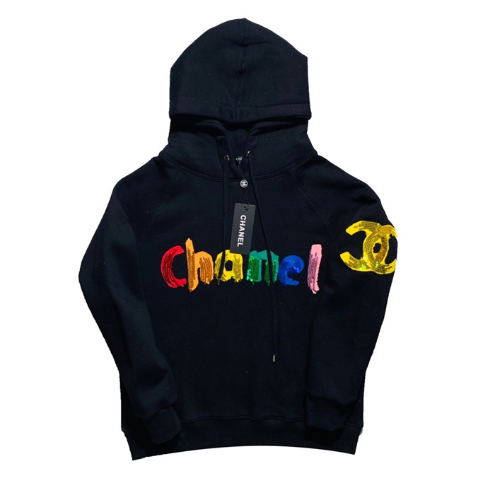 シャネルメンズオーバーサイズコットン起毛フーディa0491ブラック