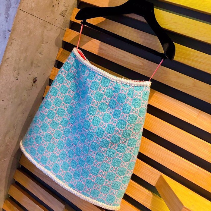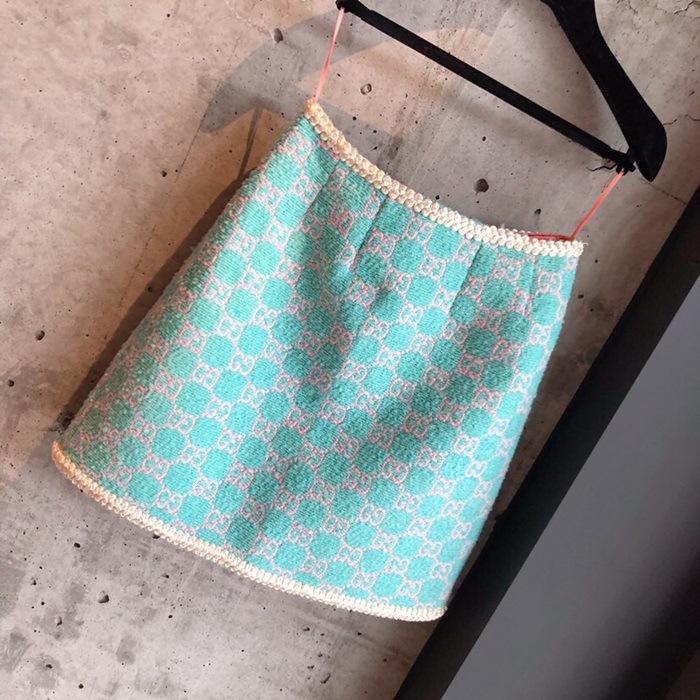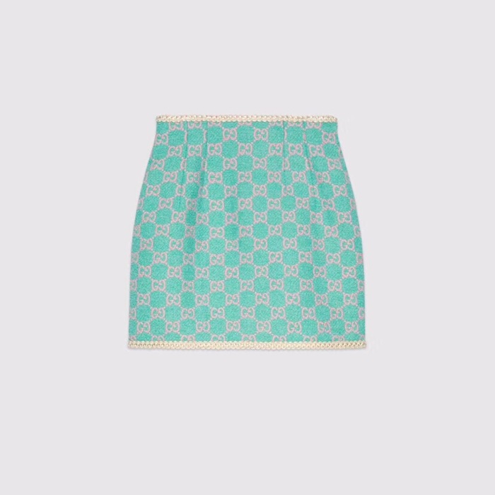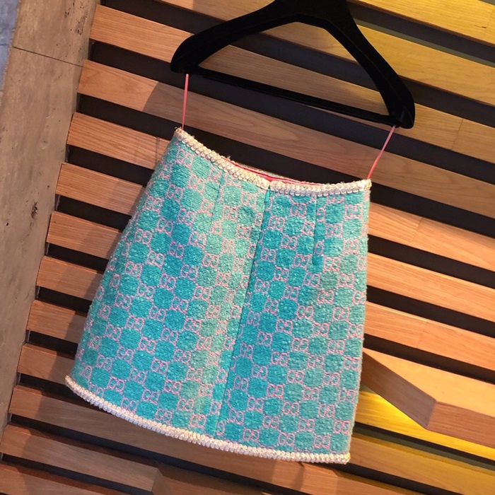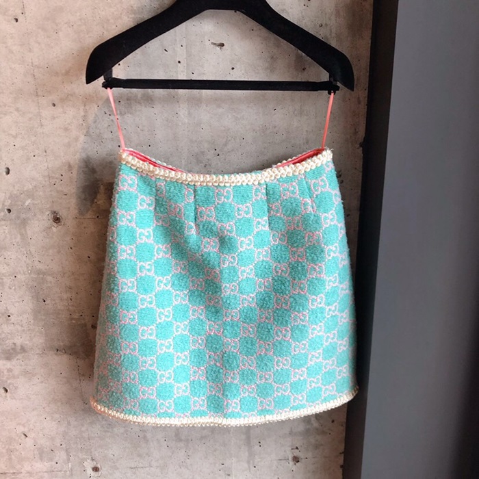 グッチレディースモダントレンディツイードスカートc01791スカイブルー