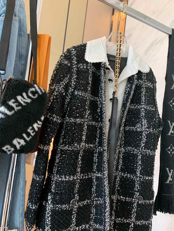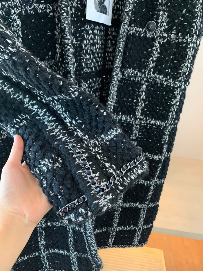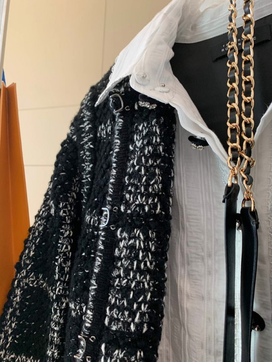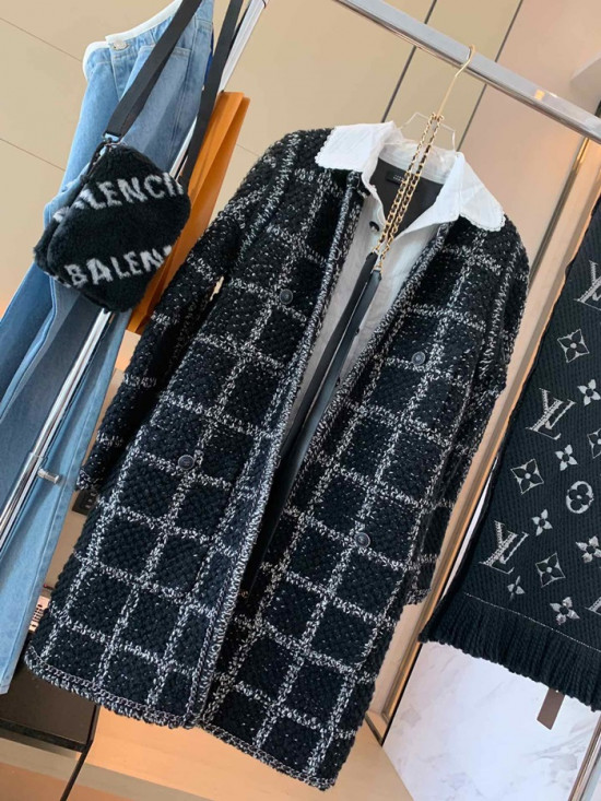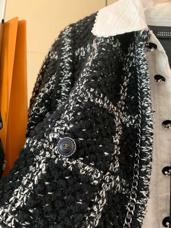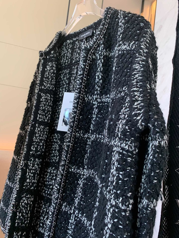 シャネルレディーストレンディツイードコートa0497ブラック