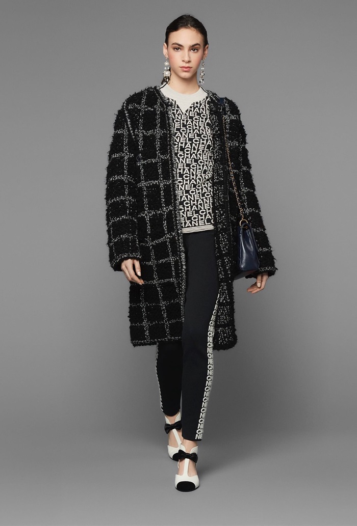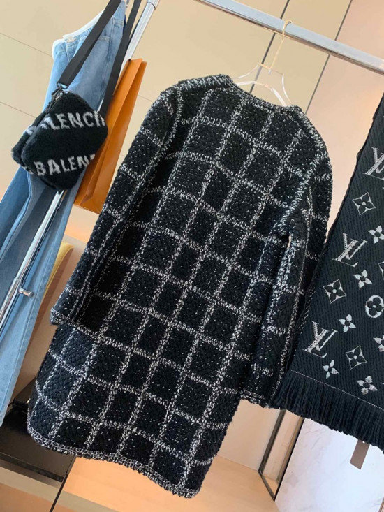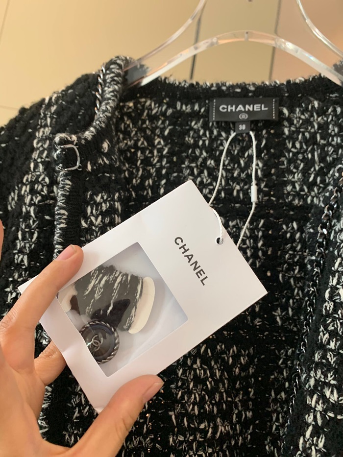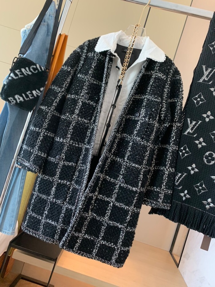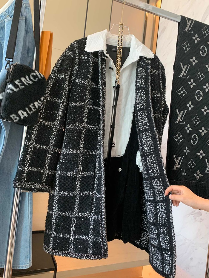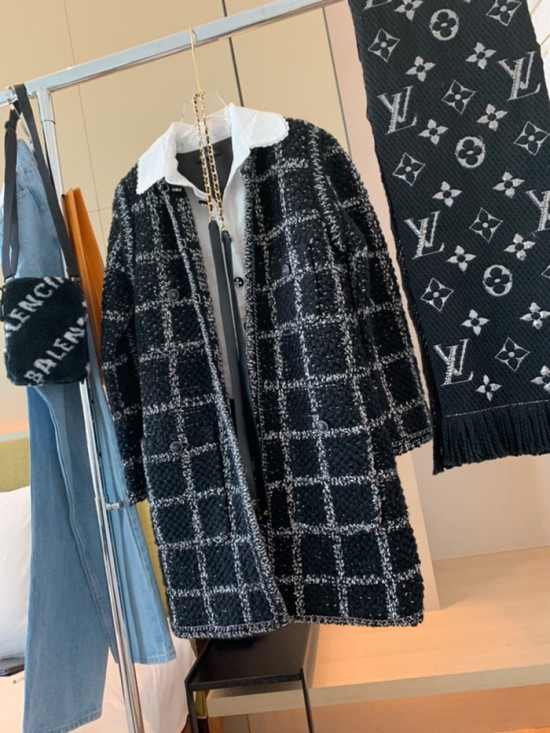 シャネルレディーストレンディツイードコートa0497ブラック