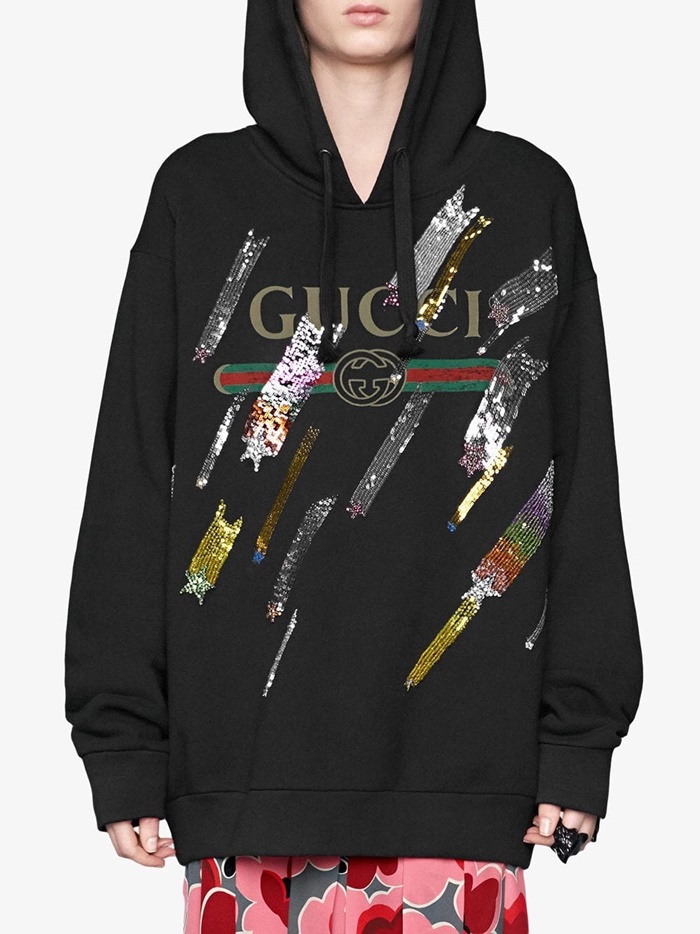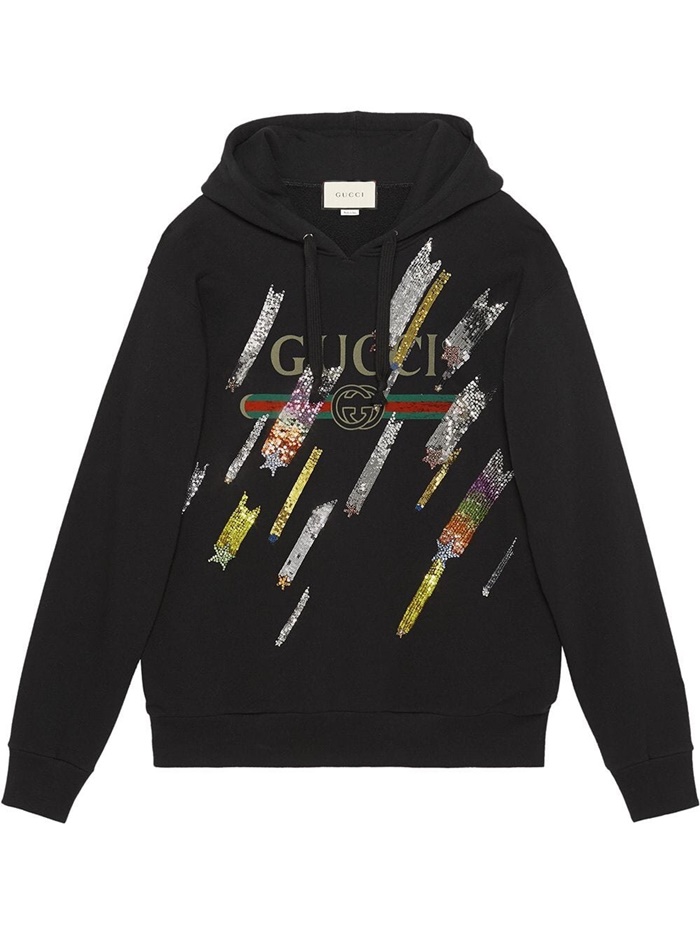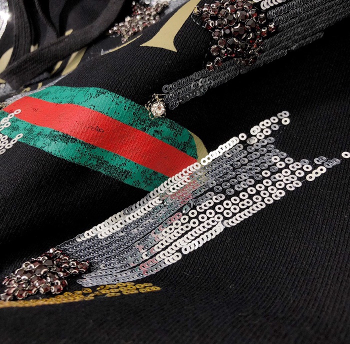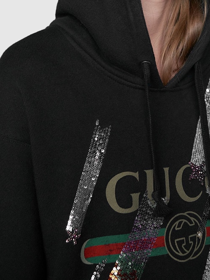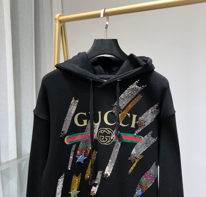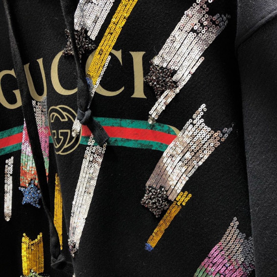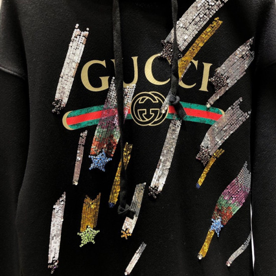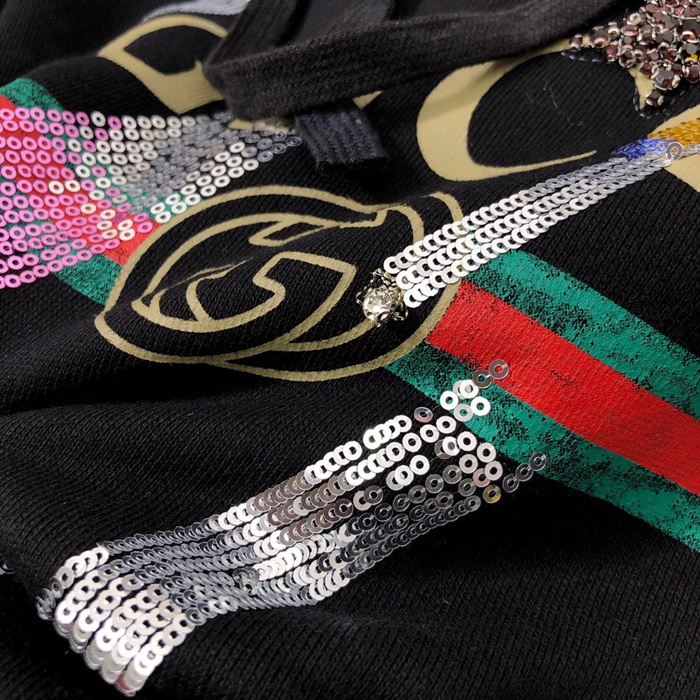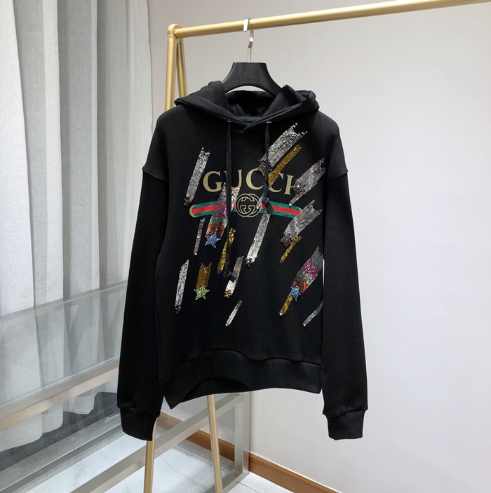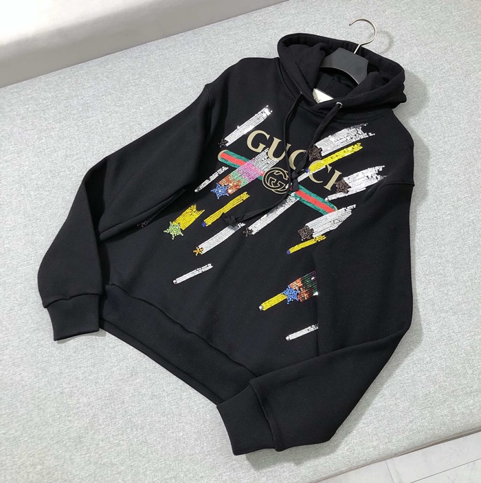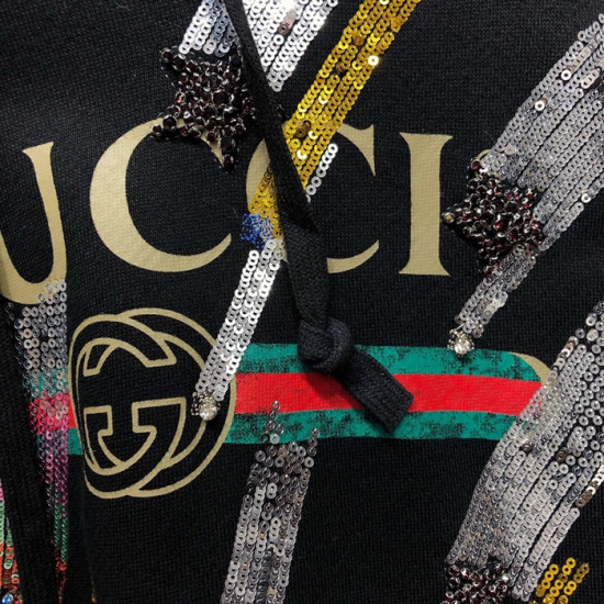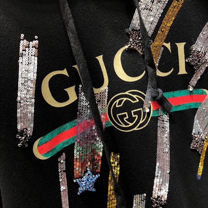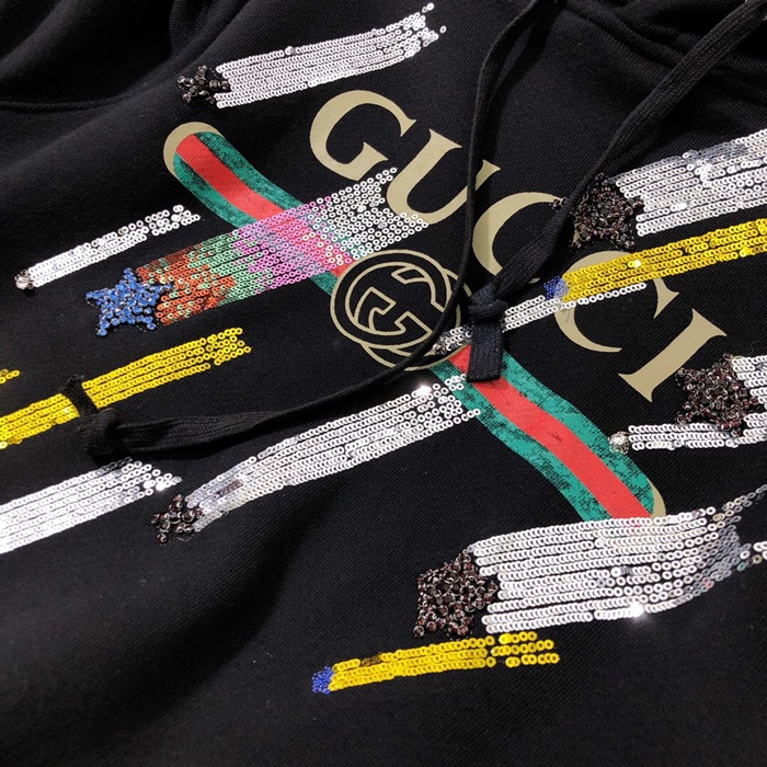 グッチメンズグリッターコットンフーディc01818ブラック