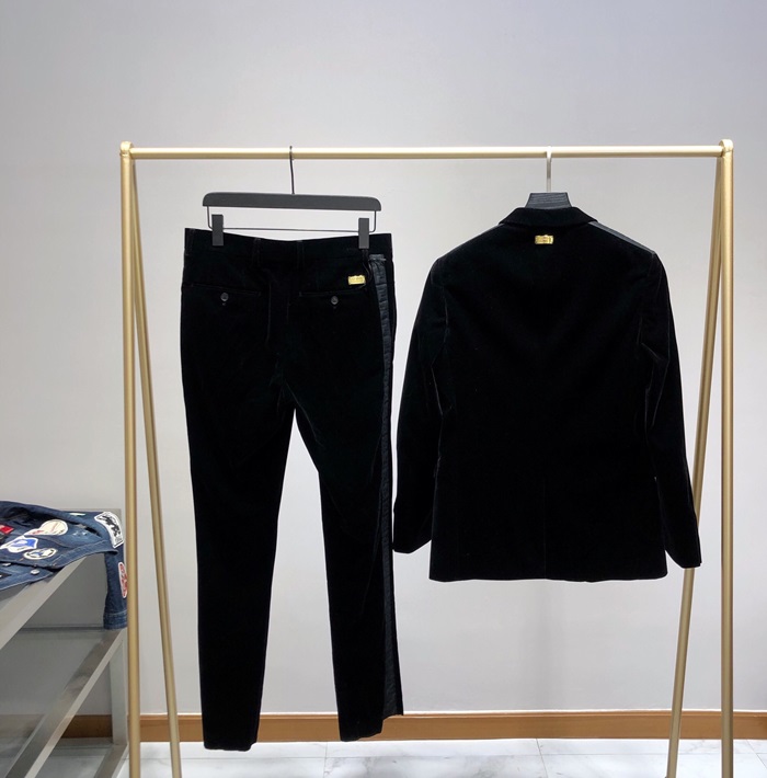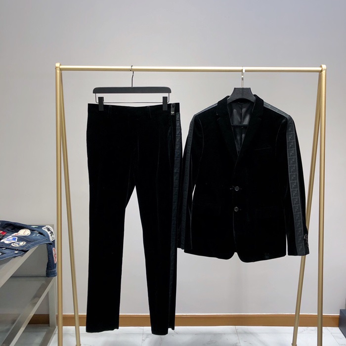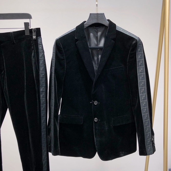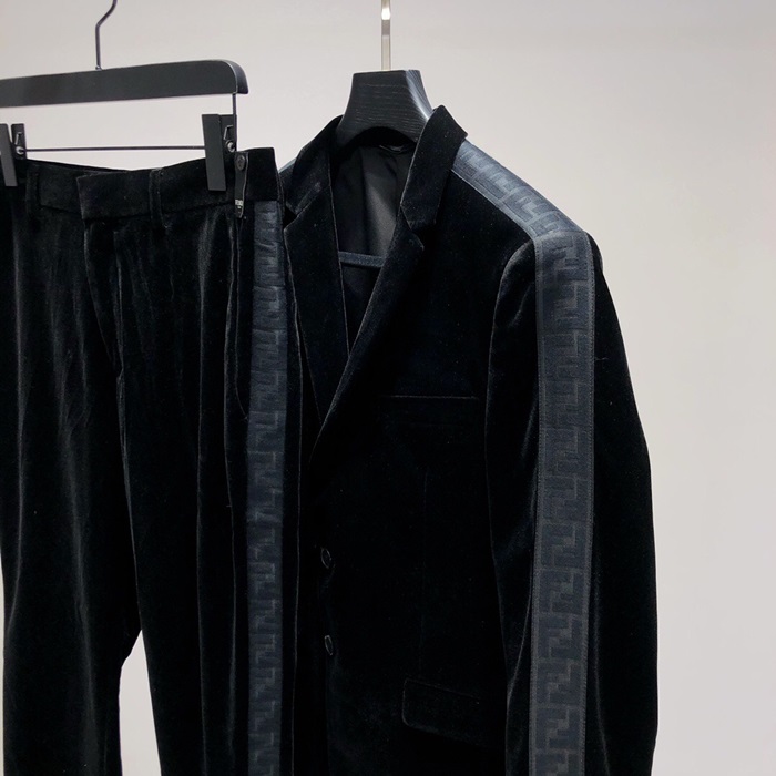 ェンディメンズトレンディベルベットスーツジャケット&パンツn0481.ブラック