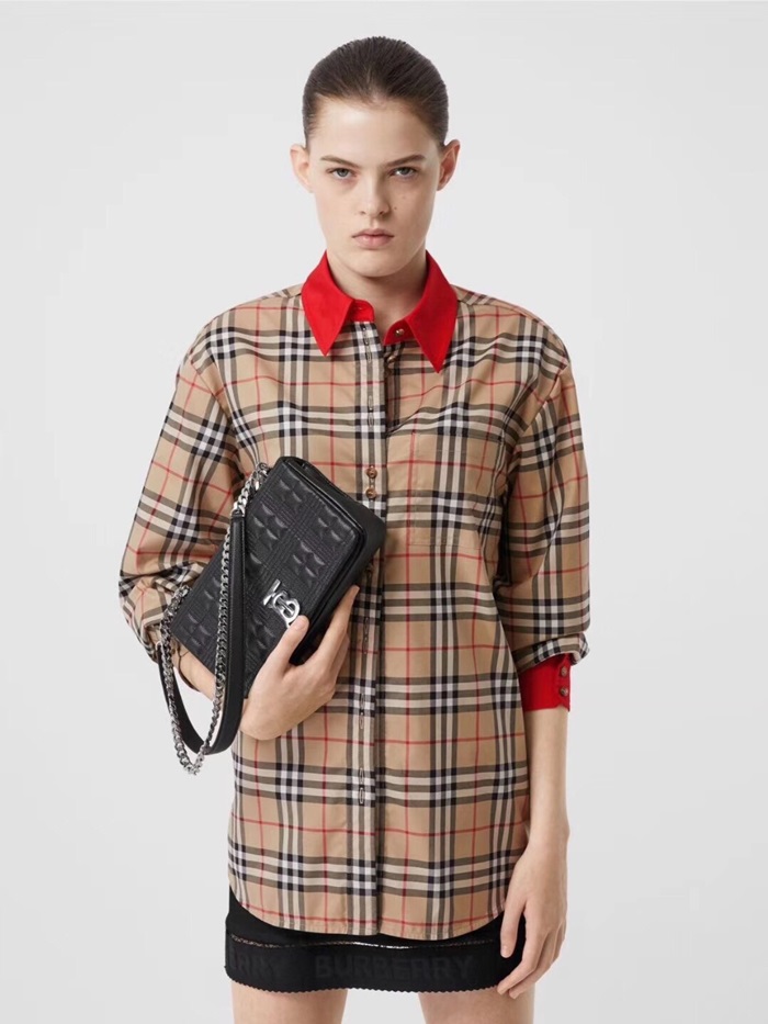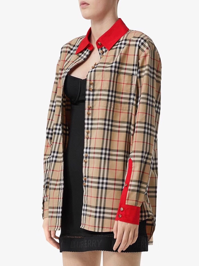 バーバリーレディースヴィンテージカジュアルコットンシャツr01771.キャメル