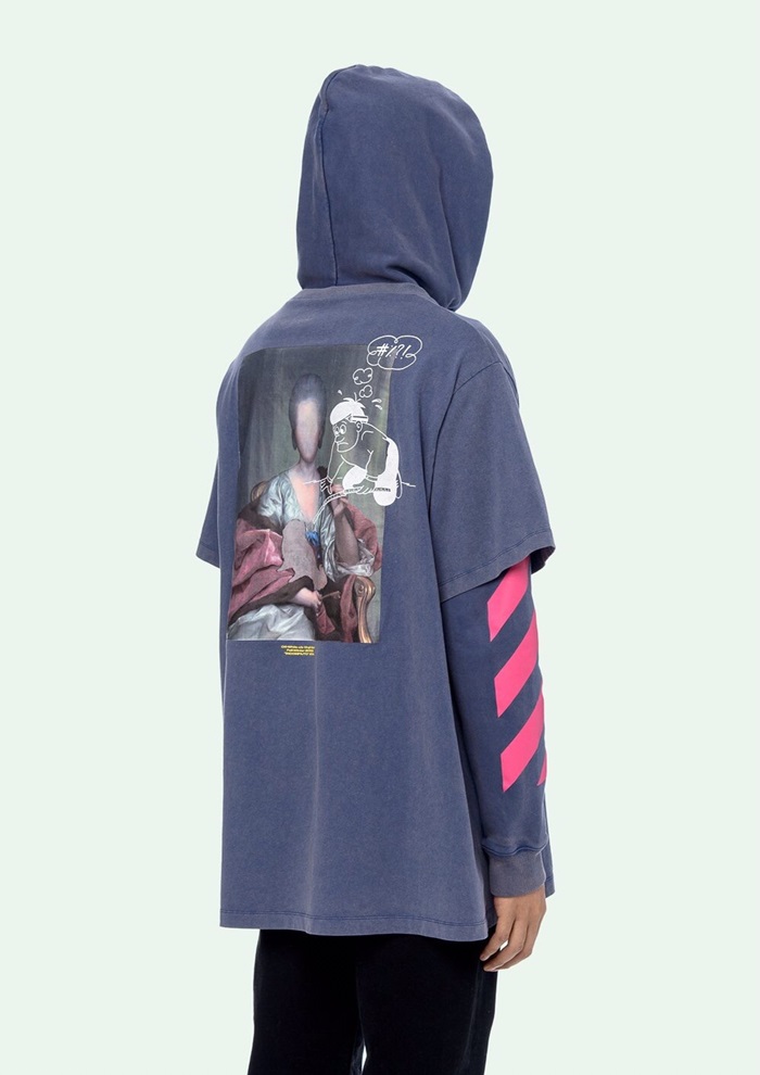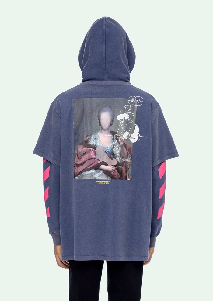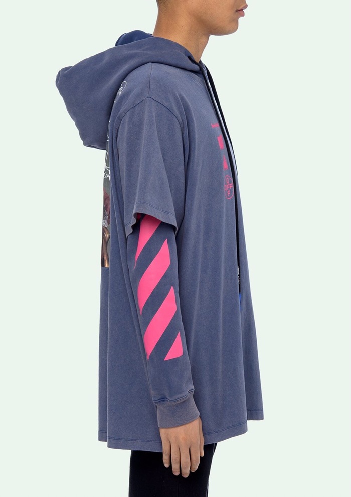 オフホワイトメンズオーバーサイズフーディf0296ブルー