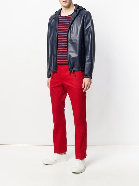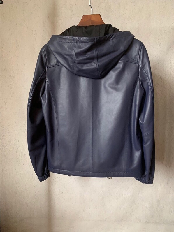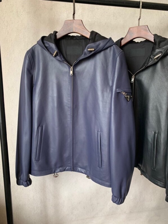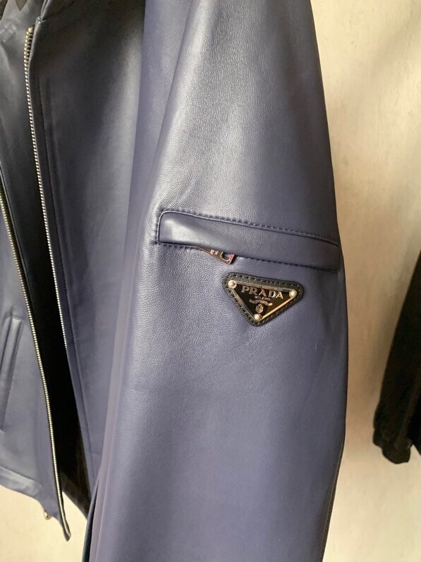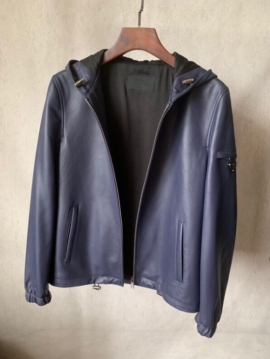 プラダメンズカジュアルレザージャケットa08902(ブルー/ブラック)
