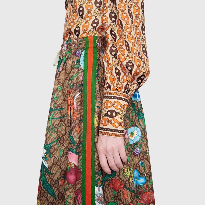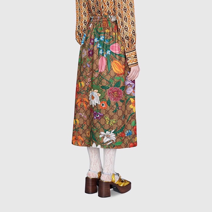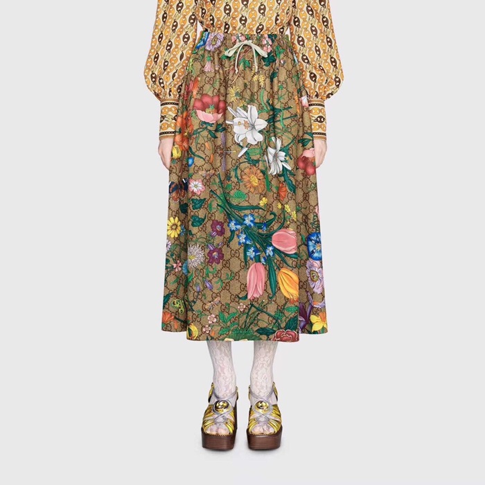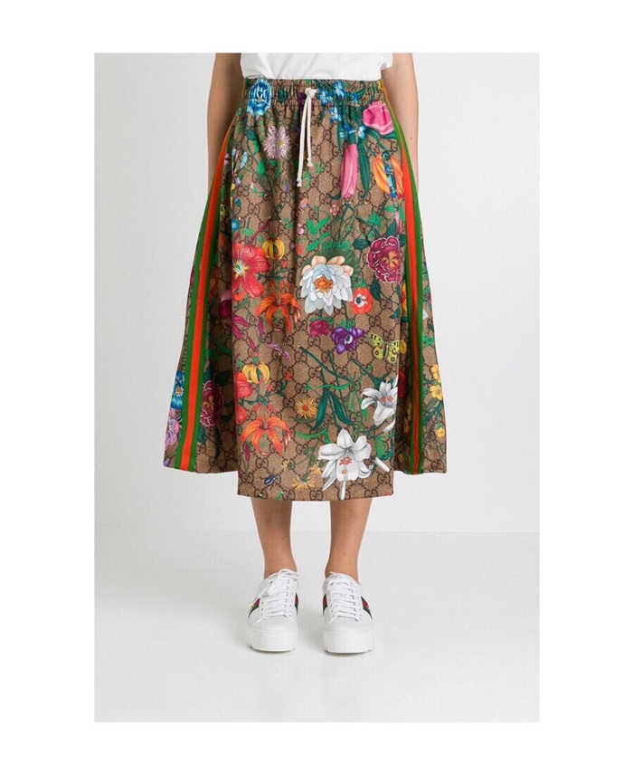 グッチグッチレディーストレンディフラワーロングスカートc01941ブラウン