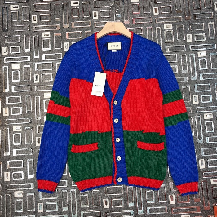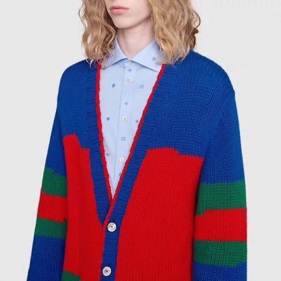 グッチメンズトレンディネックニットカーディガンc01955ブルー