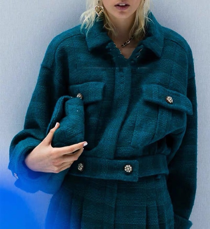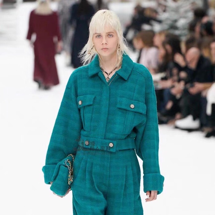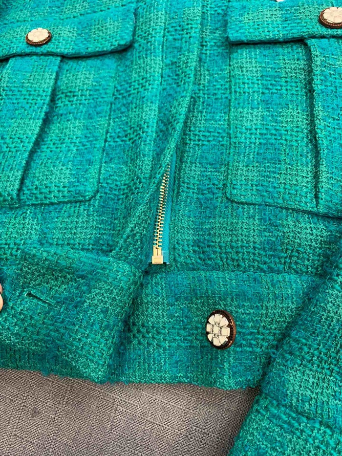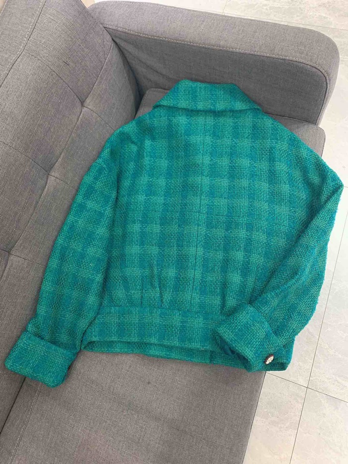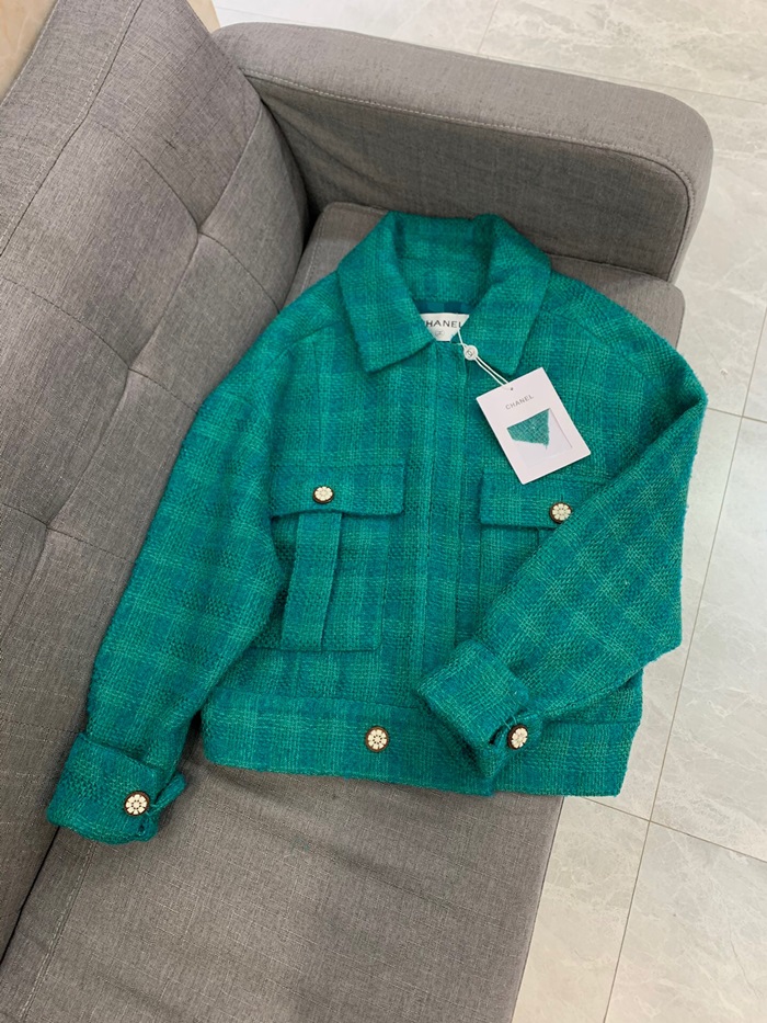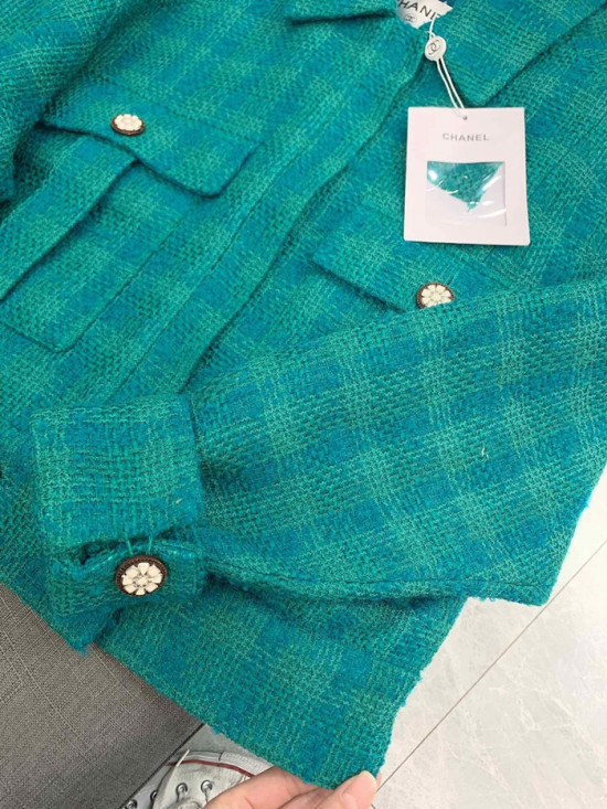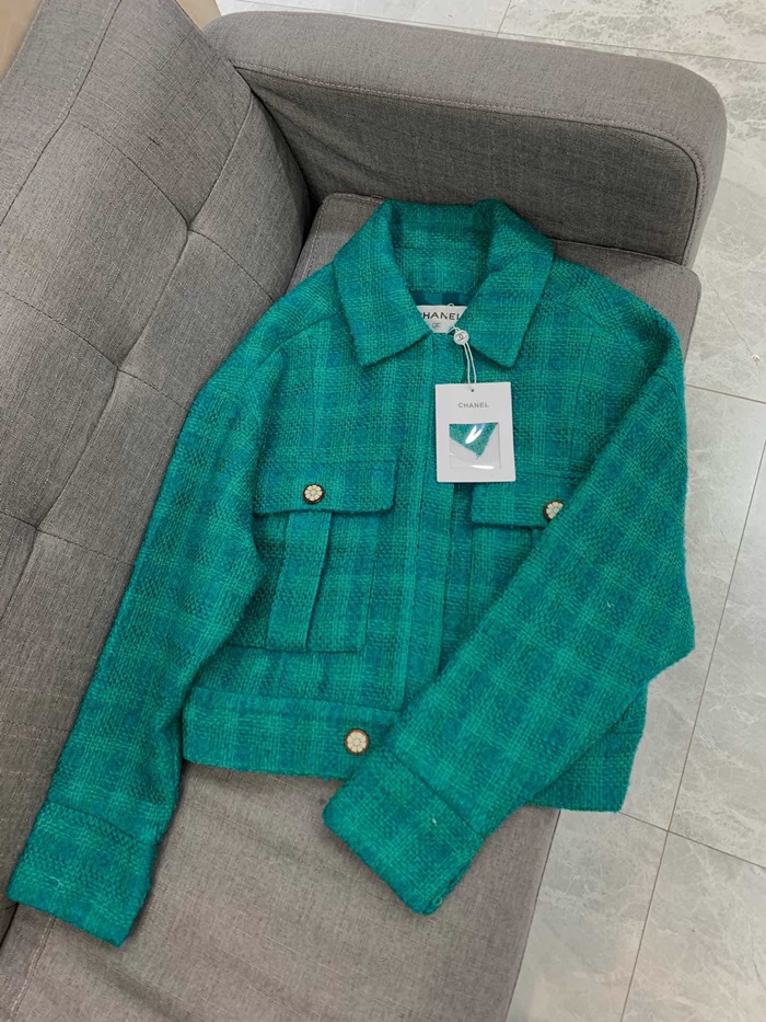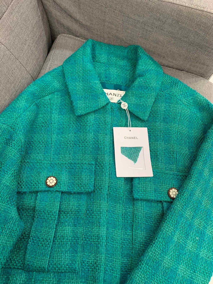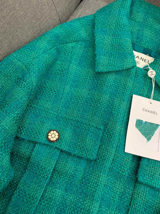 シャネルシャネルレディースラグジュアリーツイード半袖ジャケットa0516グリーン