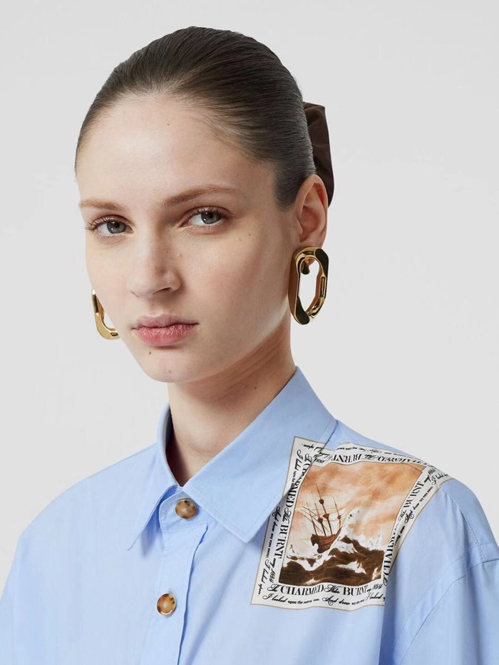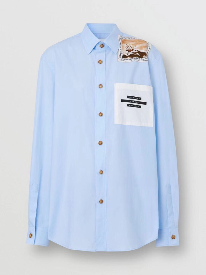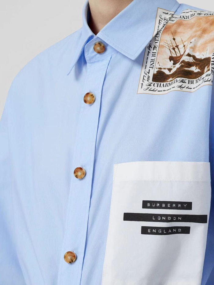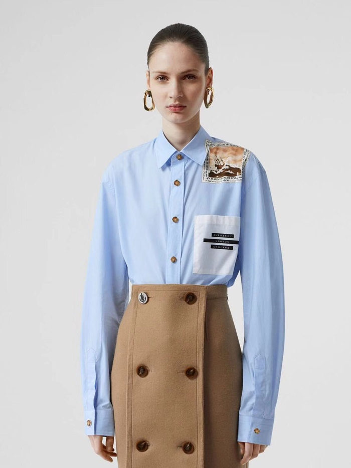 バーバリーレディースクラシックカジュアルコットンシャツr01871.ブルー