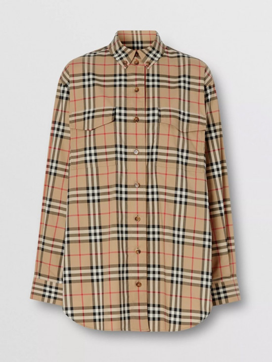 バーバリーバーバリーメンズヴィンテージカジュアルコットンシャツr01871.キャメル