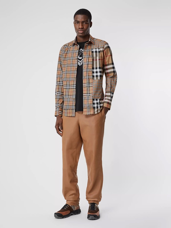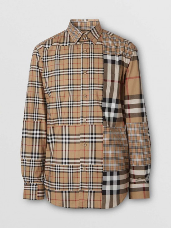 バーバリーバーバリーメンズヴィンテージカジュアルコットンシャツr01872キャメル