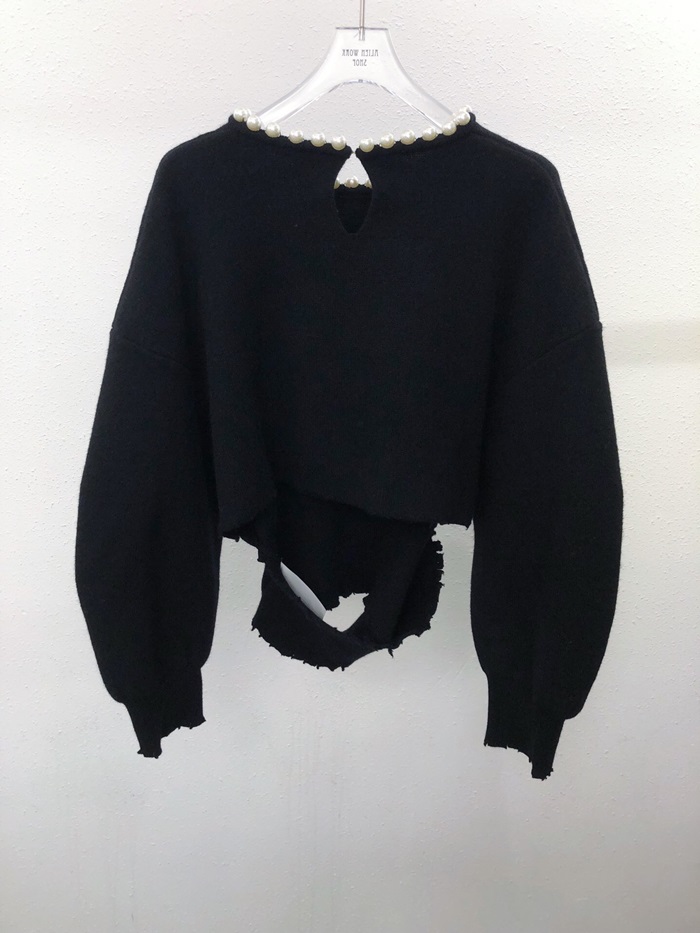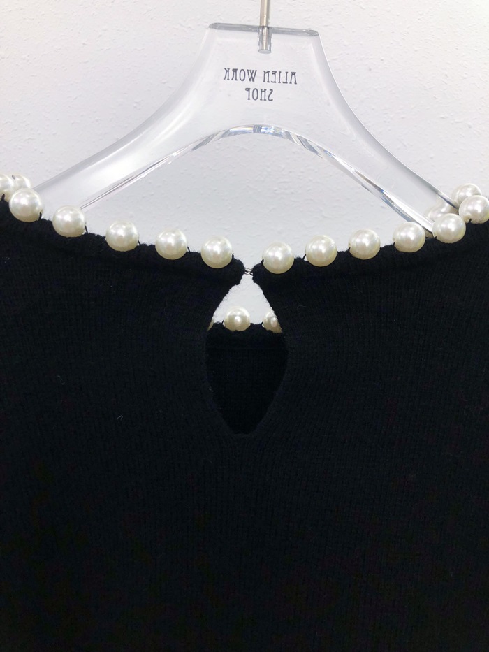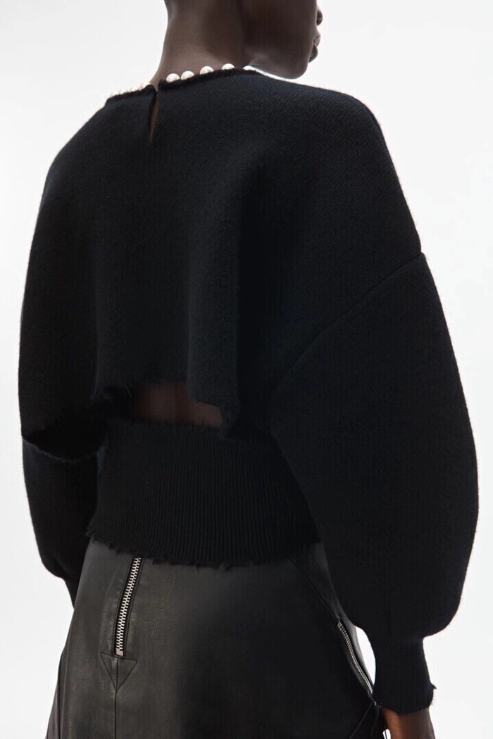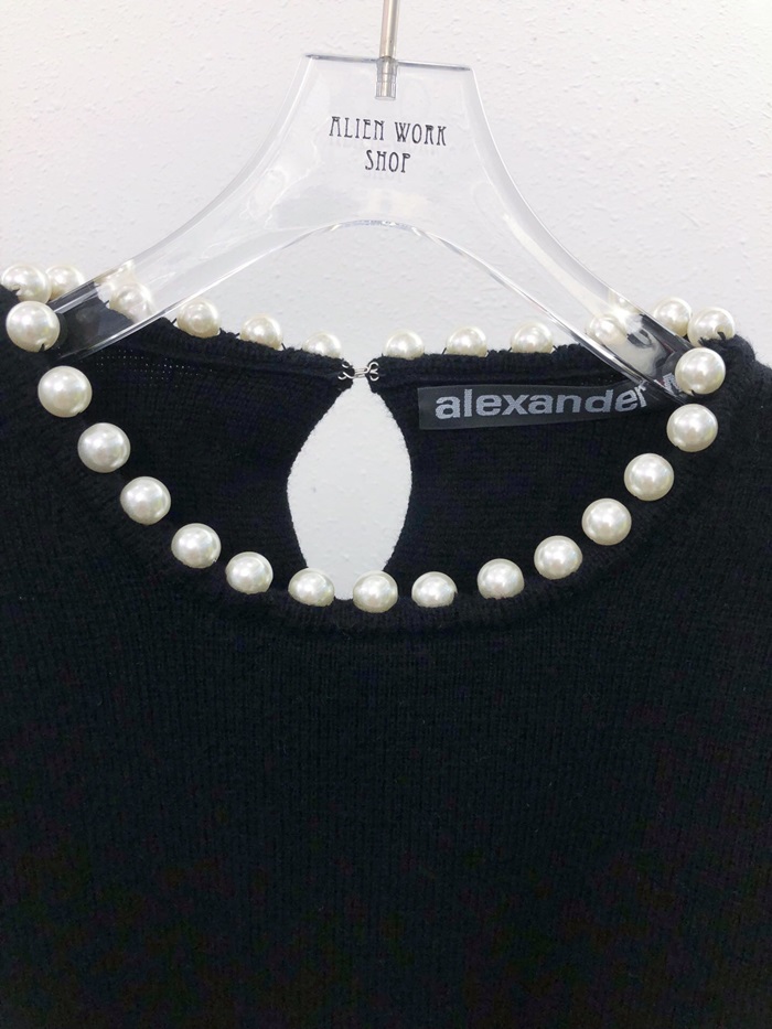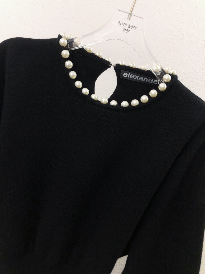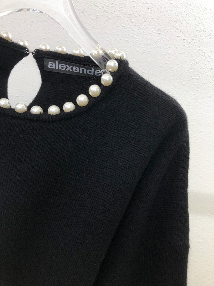 アレクサンダーワンレディーストレンディパールウールセーターw0057ブラック