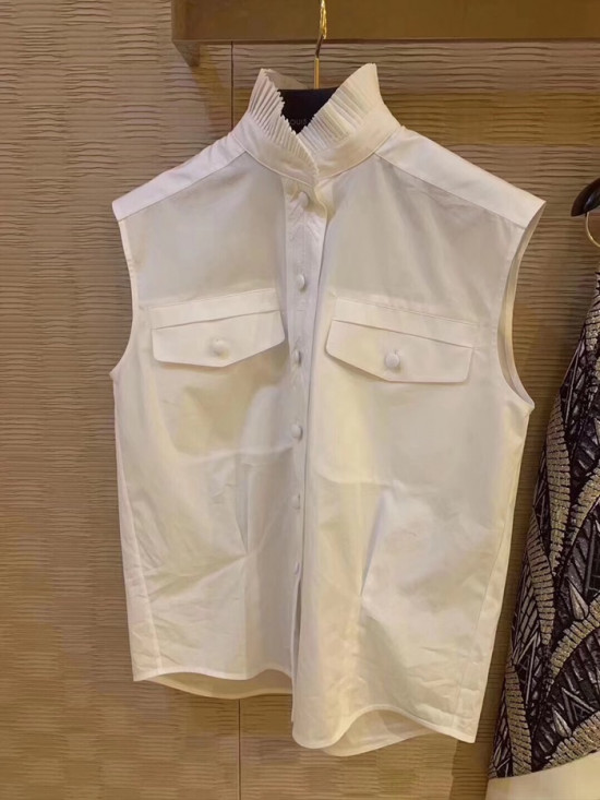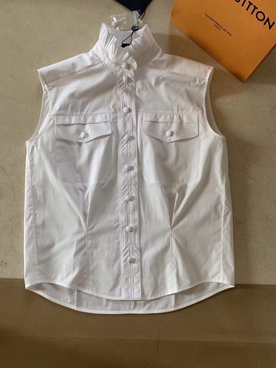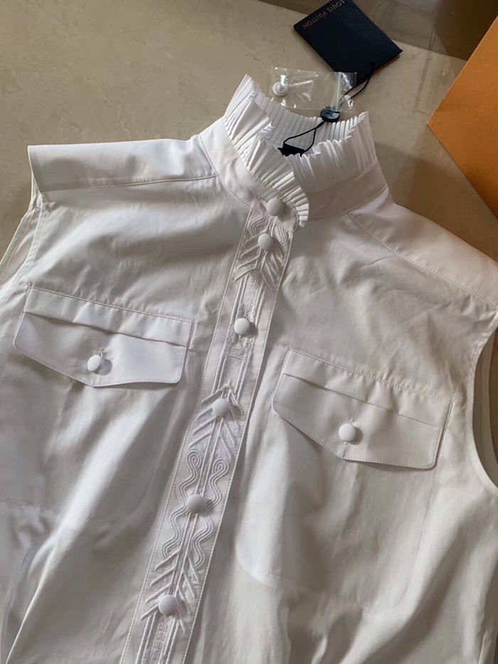 ルイヴィトンレディースクラシックコットンスリーブレスシャツu01538ホワイト