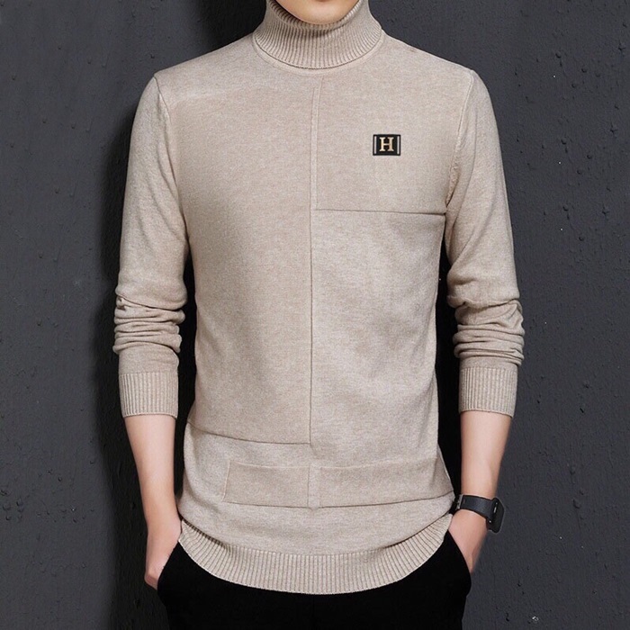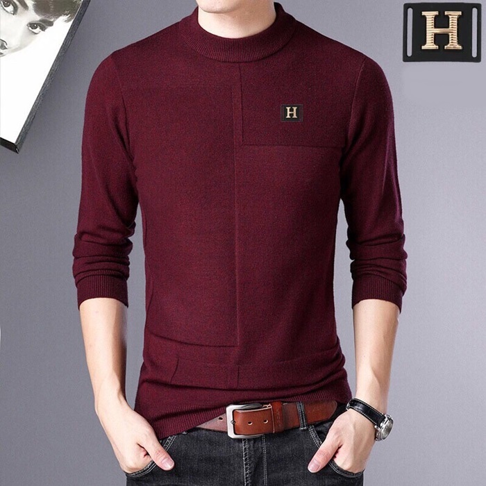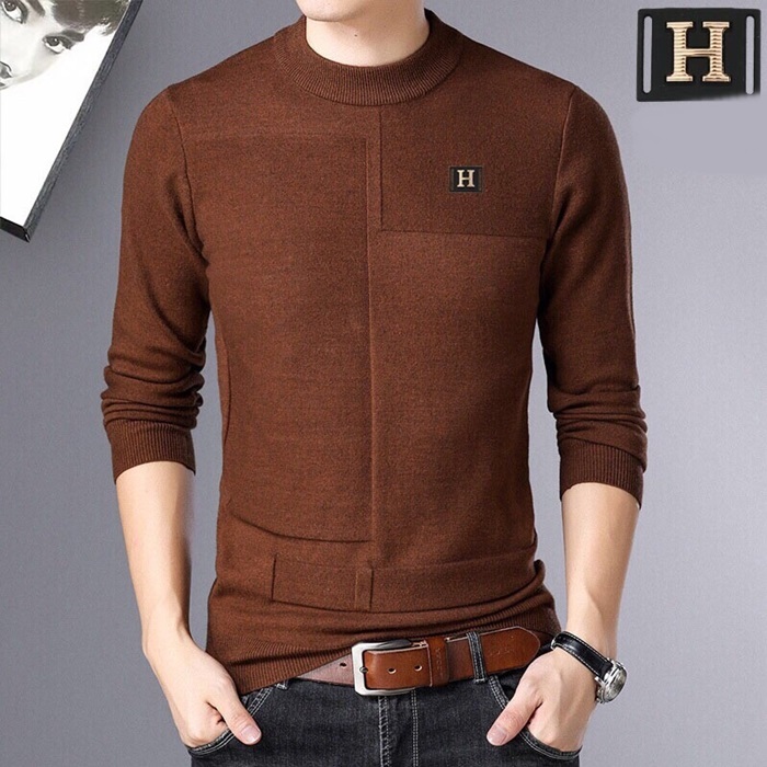 エルメス-エルメスメンズクルーネックウールセーターr03653(ベージュ/ブラウン/バーガンディ)