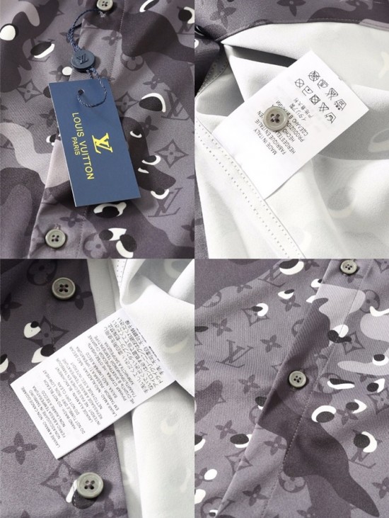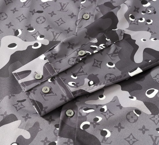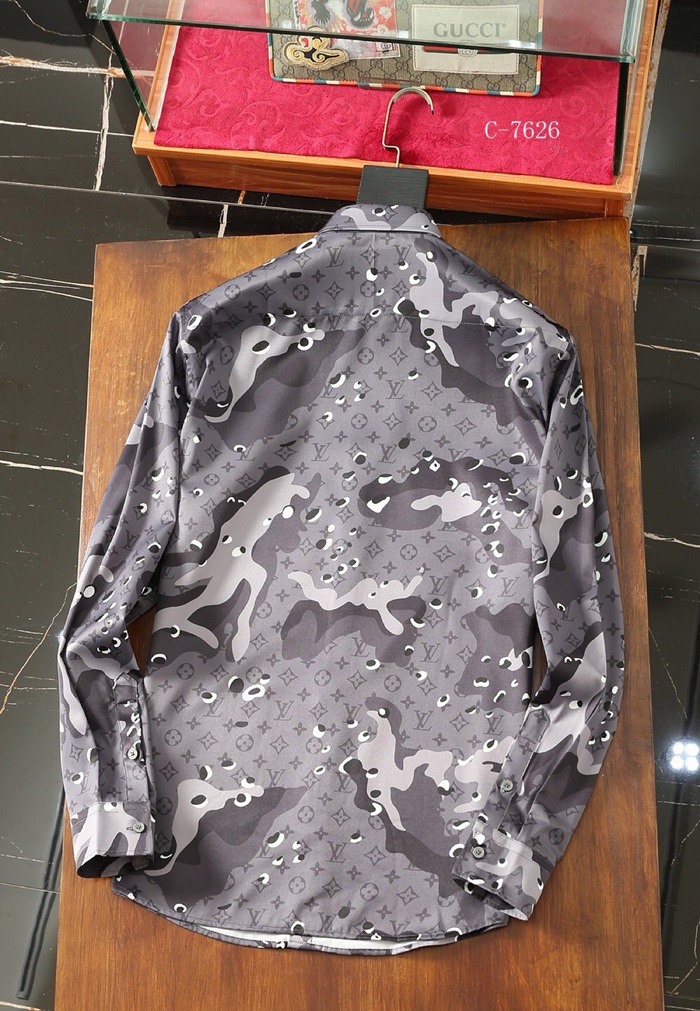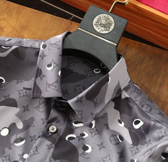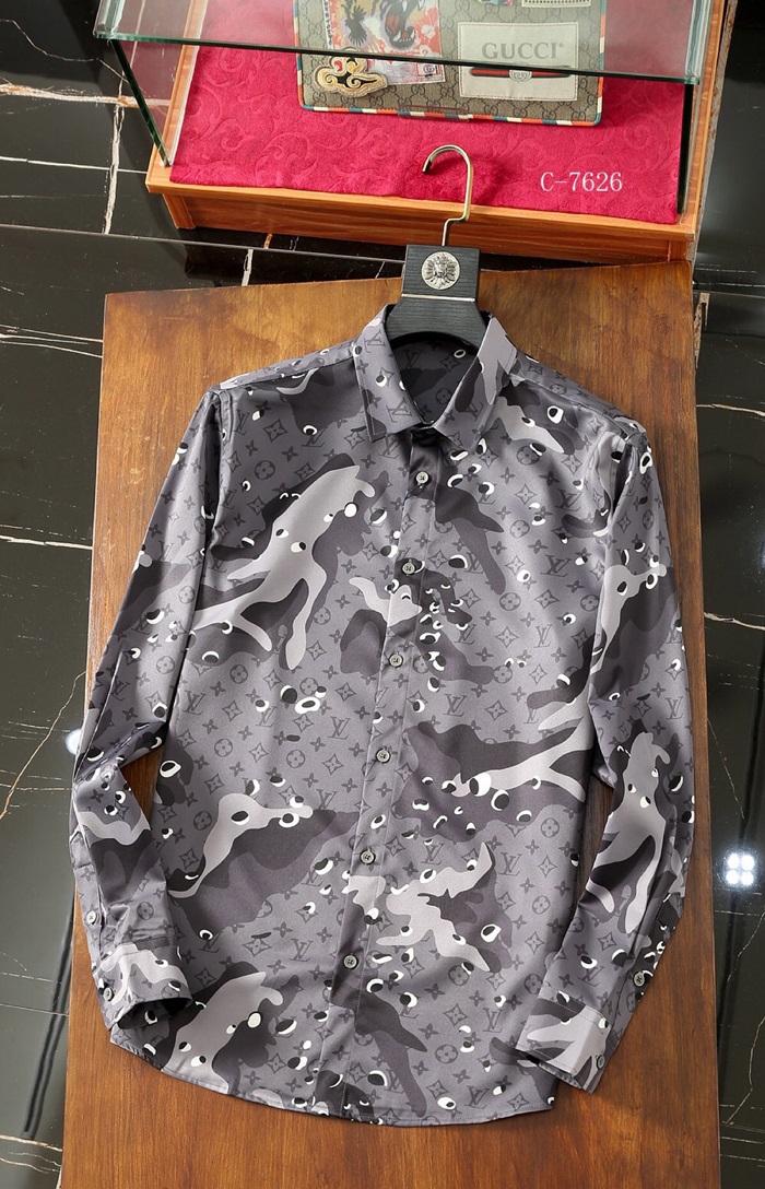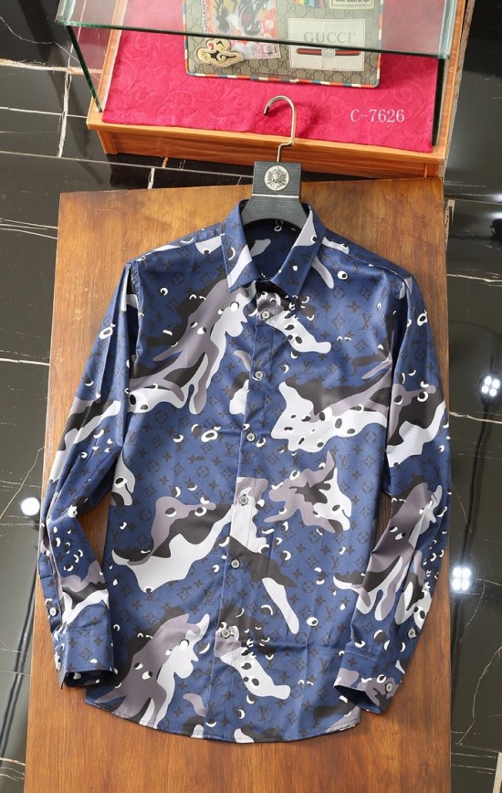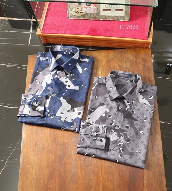 ルイヴィトンルイヴィトンメンズトレンディカジュアルシルクシャツu01554.2(ブルー/グレー)