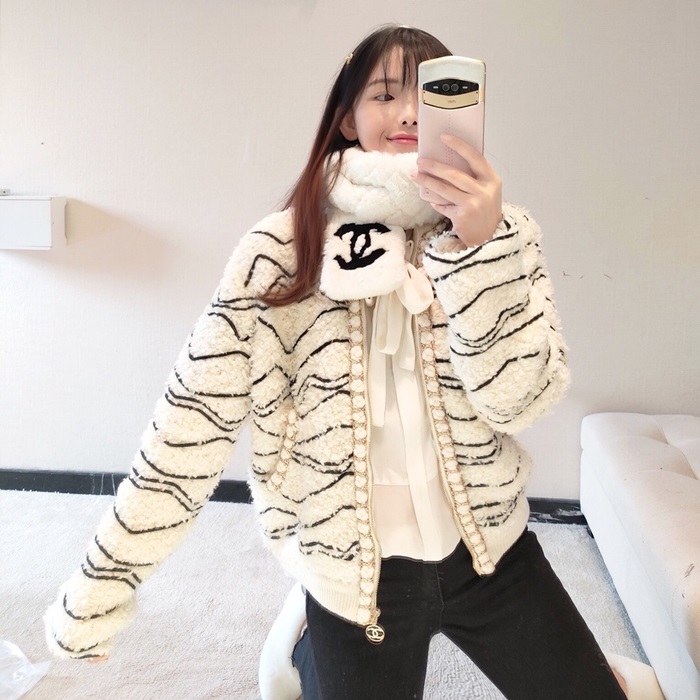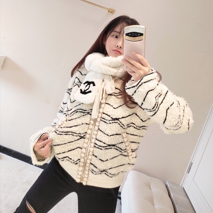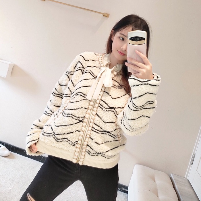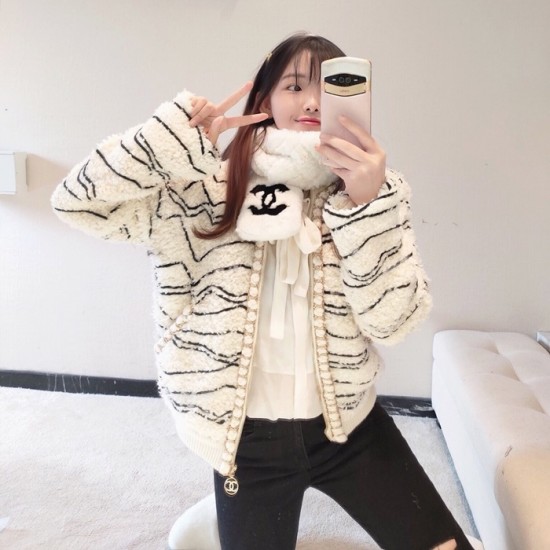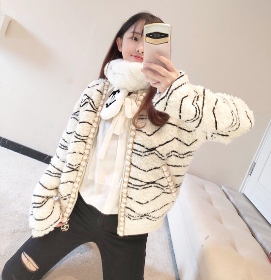 シャネル-シャネルレディースラグジュアリーキャメル-ヘアジャケットa0529ホワイト