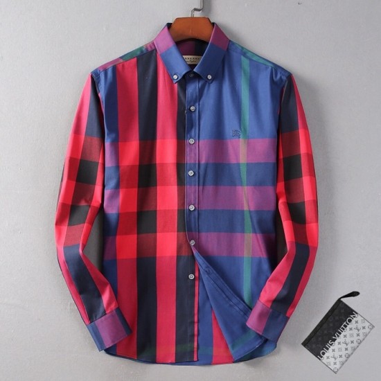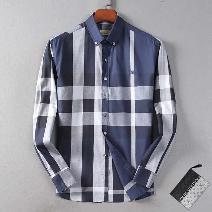 バーバリーバーバリーメンズクラシックカジュアルコットンチェックシャツr01960ブルー