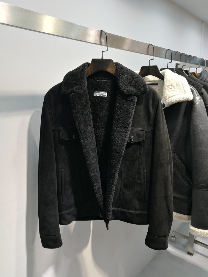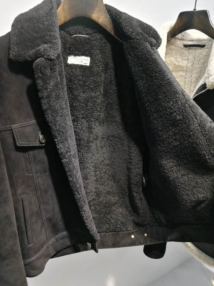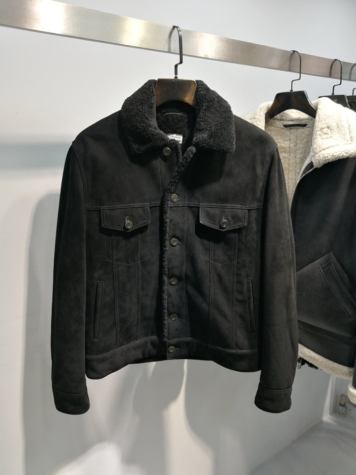 サンローランメンズカジュアルフランネルレザージャケットl0082.ブラック