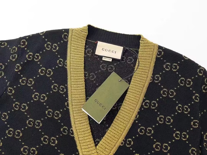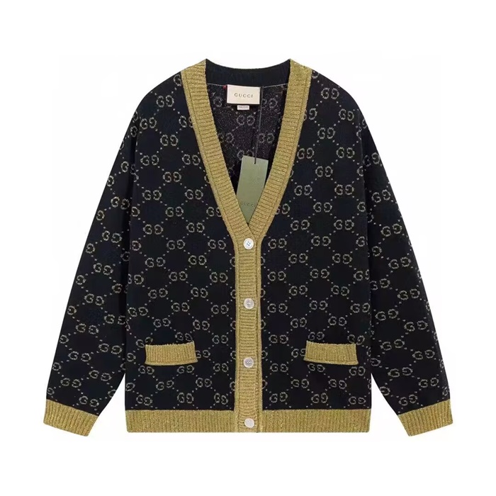 グッチメンズトレンディネックウールカーディガンc02066ブラック