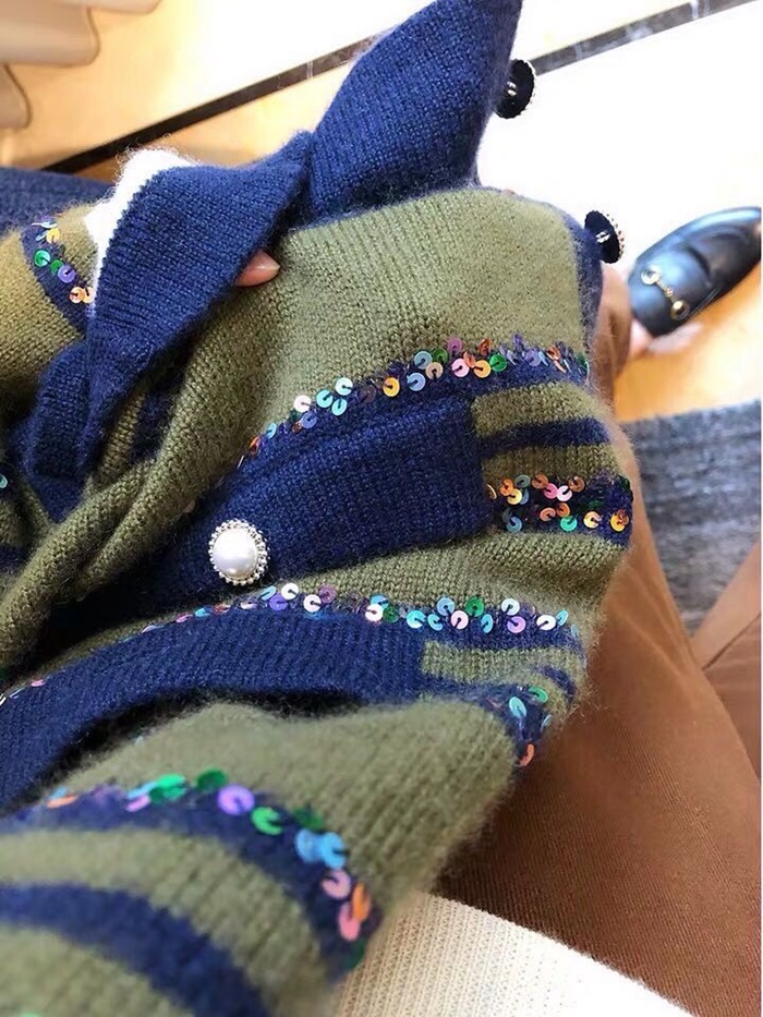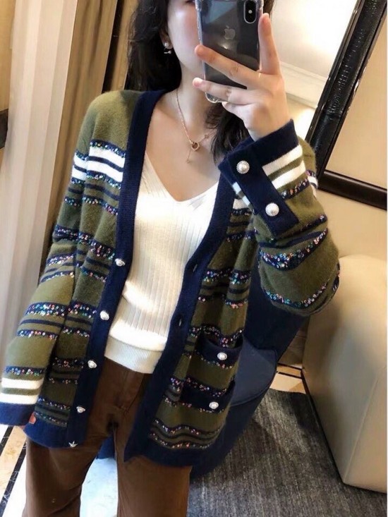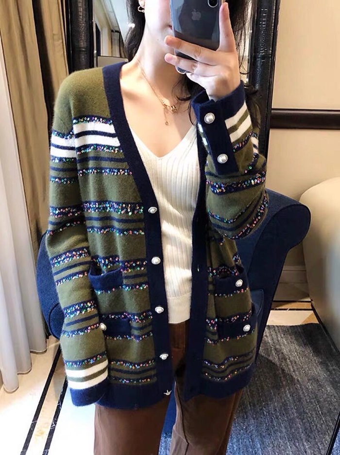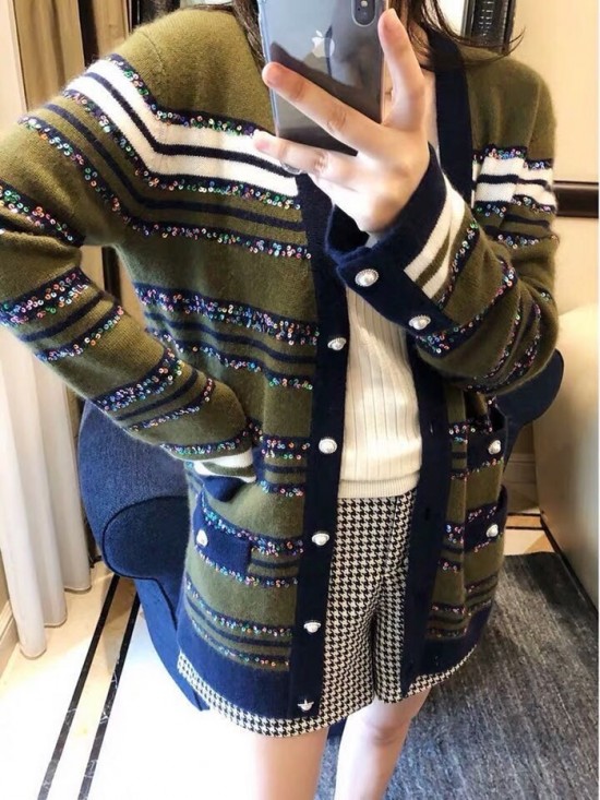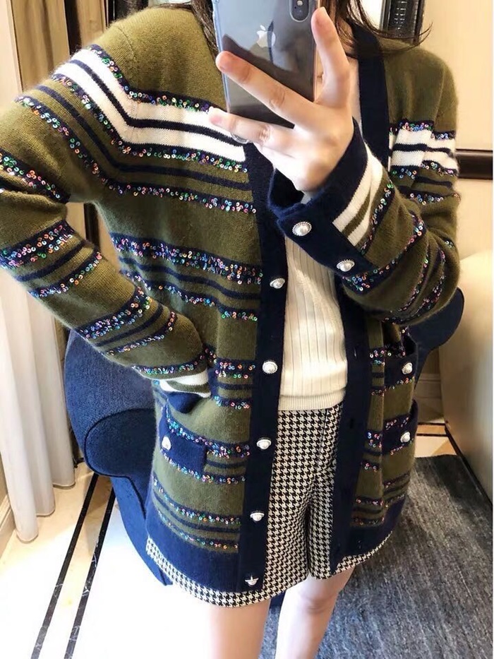シャネルレディーストレンディネックカシミヤカーディガンl0536グリーン