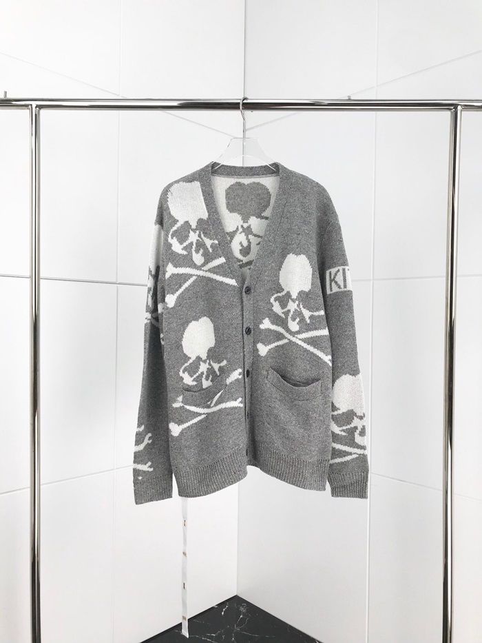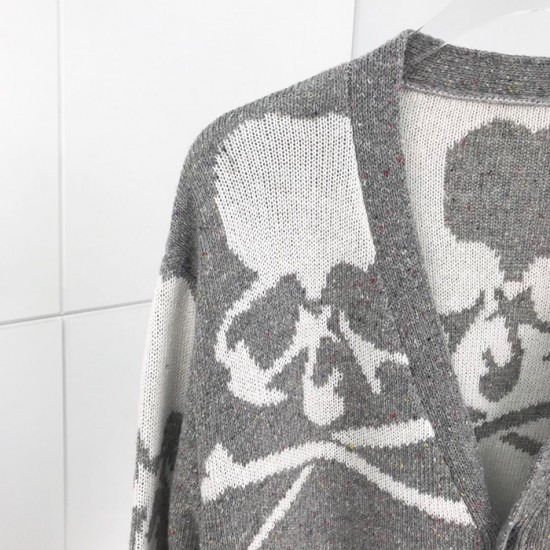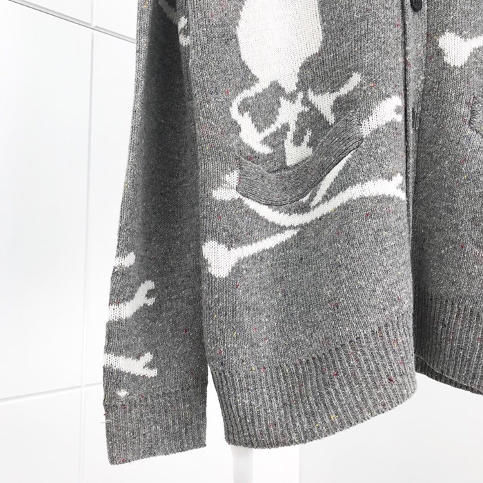 マスターマインドジャパンメンズスカルネックウールカーディガンs0066グレー