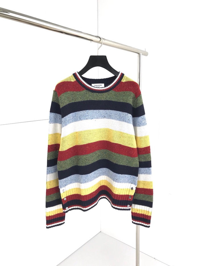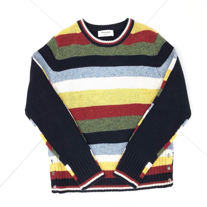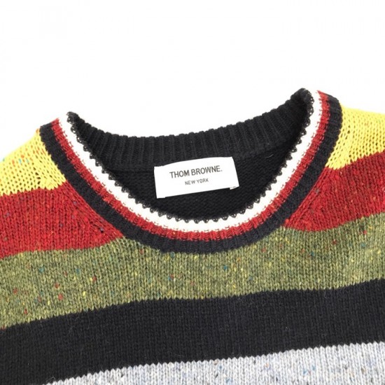 トムブラウン-トムブラウンメンズストラップクルーネックウールセーターm0492レインボー